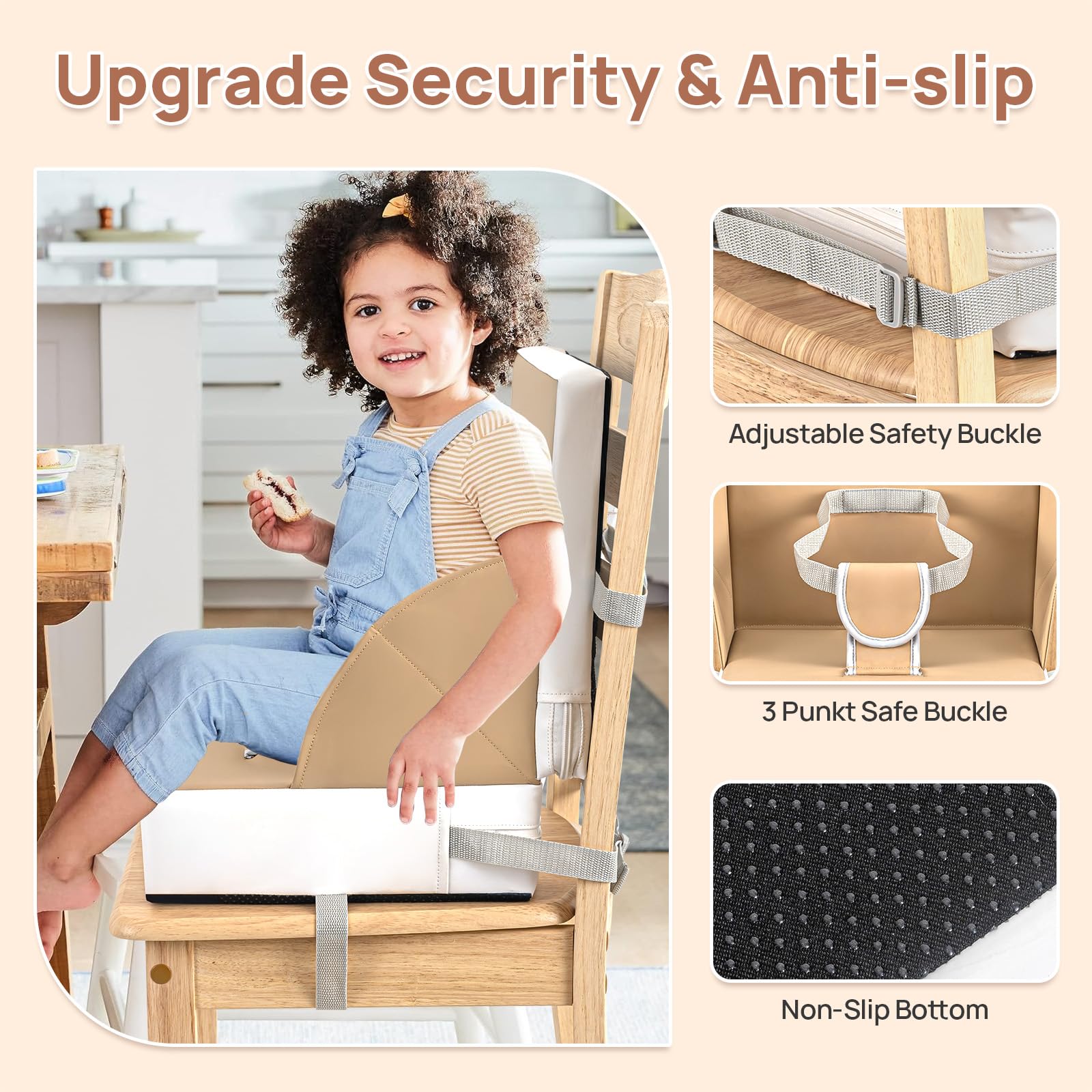 - Q: Can I use this booster seat on any dining chair? A: Yes, the adjustable safety straps allow the booster seat to fit securely on various dining chairs and tables.