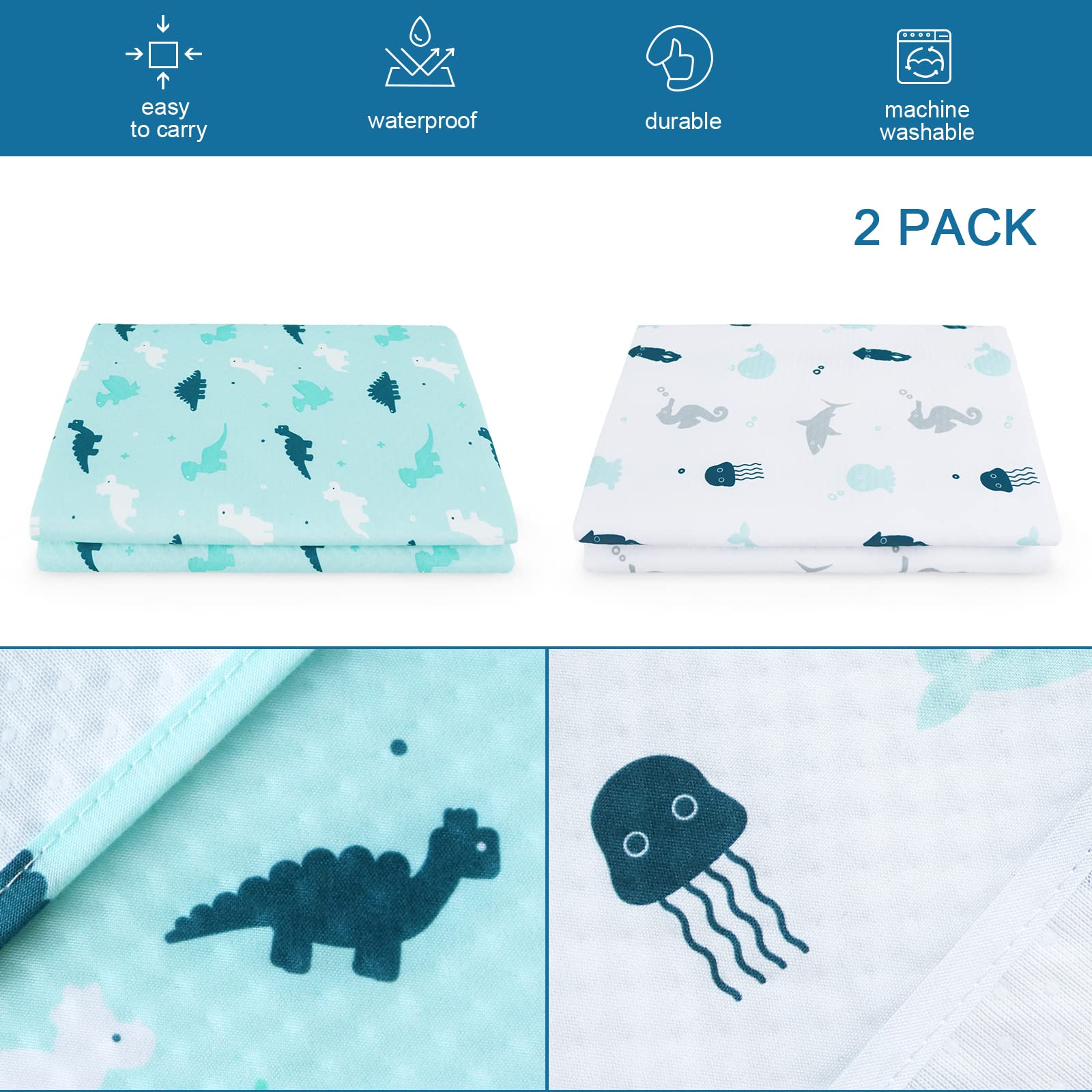 SPRINGSPIRIT Splat Mat for Under High Chair 2 Pack, High Chair Mat for Floor, Waterproof Mat, Mealtime, Playtime, Anti-Slip and Washable High Chair Mat, 42' x 46', Dinosaurs & Ocean