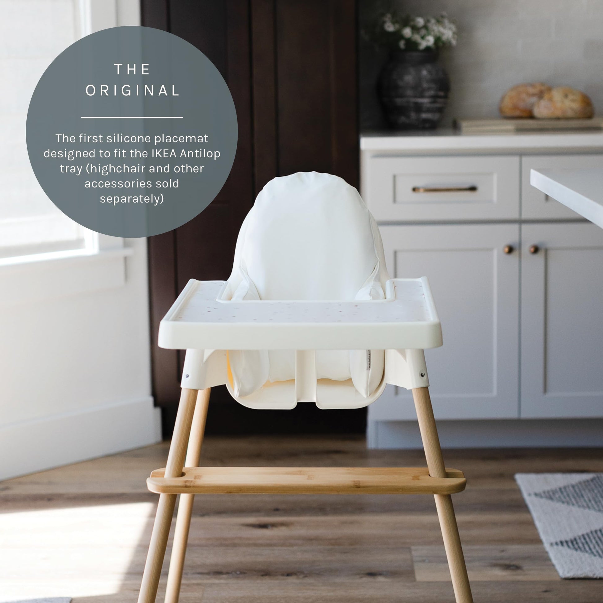 - Q: What makes this placemat different from others? A: This placemat is uniquely designed to fit the IKEA Antilop high chair, features a slip-resistant surface, and is made from safe, high-quality silicone, making mealtime easier and mess-free.
