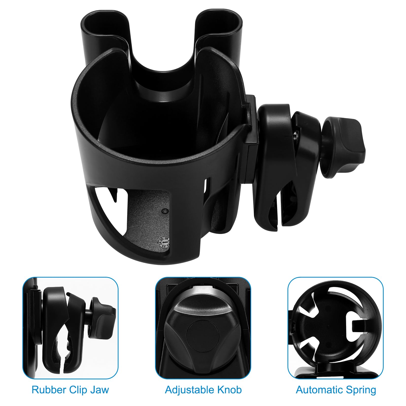 - Q: How does the cup holder stay secure while in use? A: The cup holder features an anti-slip design with rubber pads on the clamp, ensuring it remains firmly attached to the stroller or other equipment, even on rough terrain.