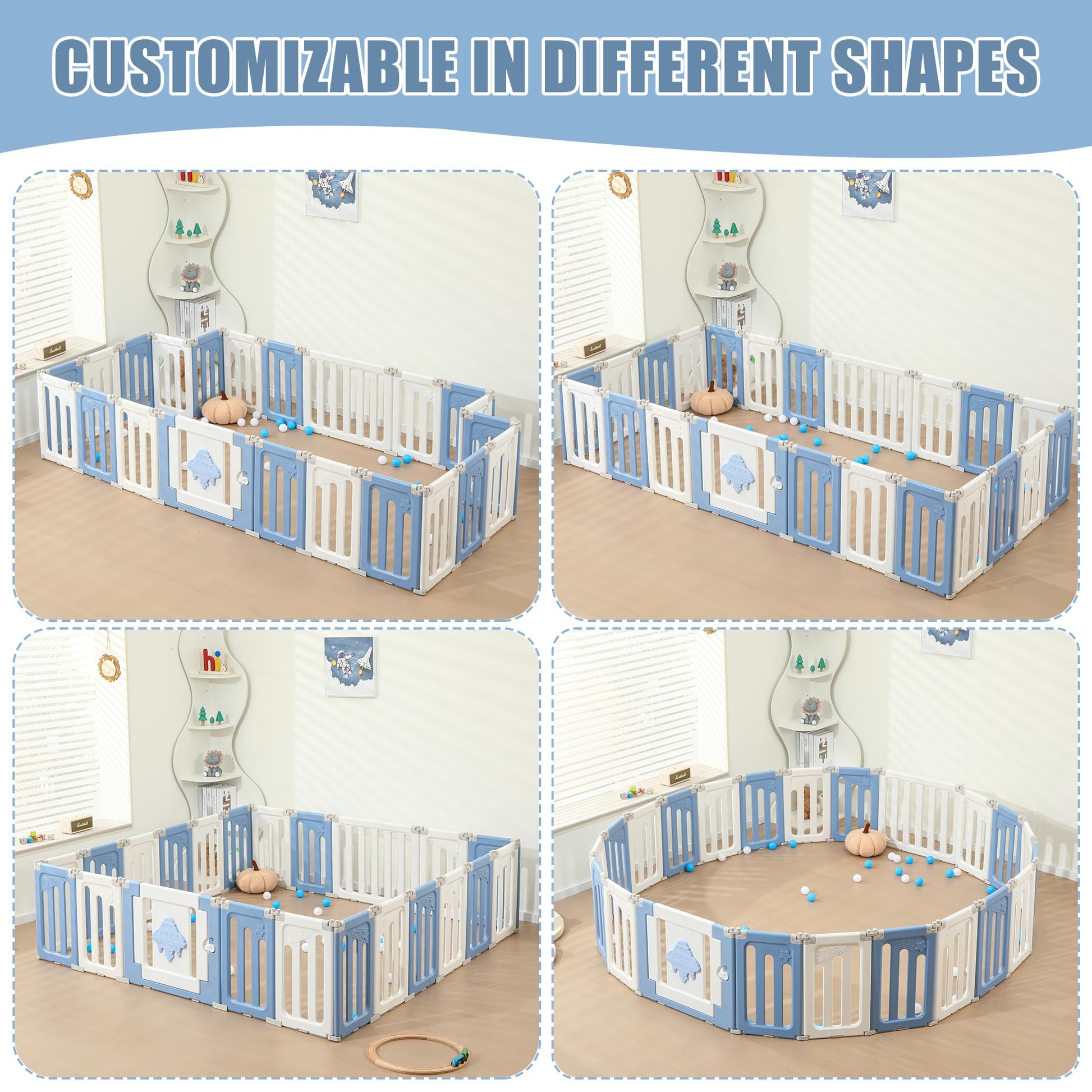 - Q: What are the dimensions of the Baby Play Pen? A: The Baby Play Pen consists of 22 panels, providing a large play area for toddlers. Each panel measures approximately 26 inches high, creating a spacious and secure environment for your child.