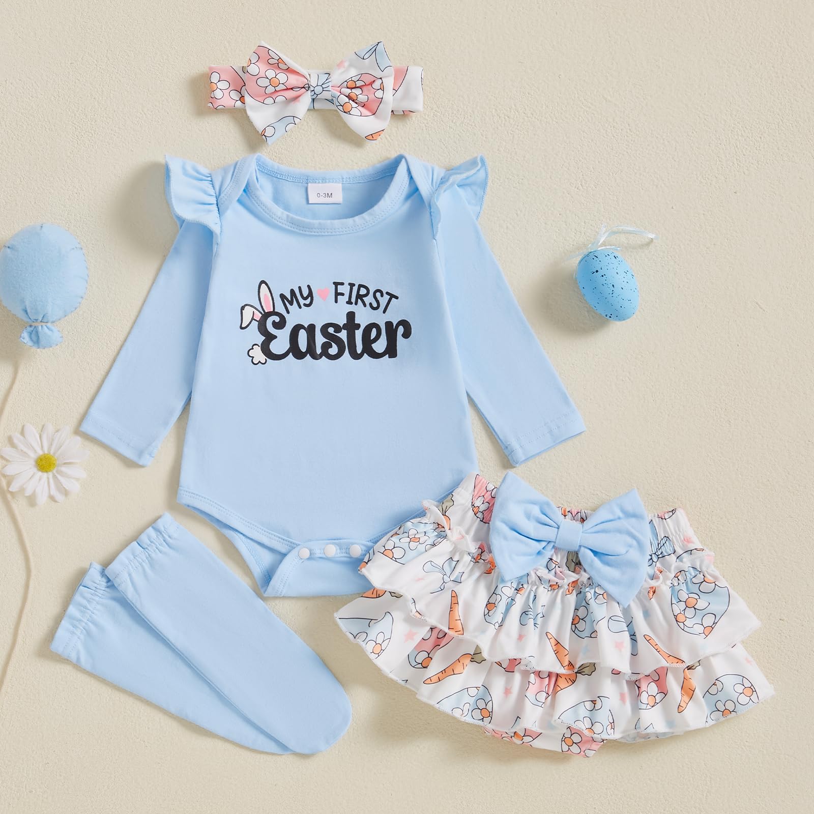 - Q: What patterns are featured on this Easter outfit? A: The outfit features cute patterns including rabbit, carrot, and bunny prints.