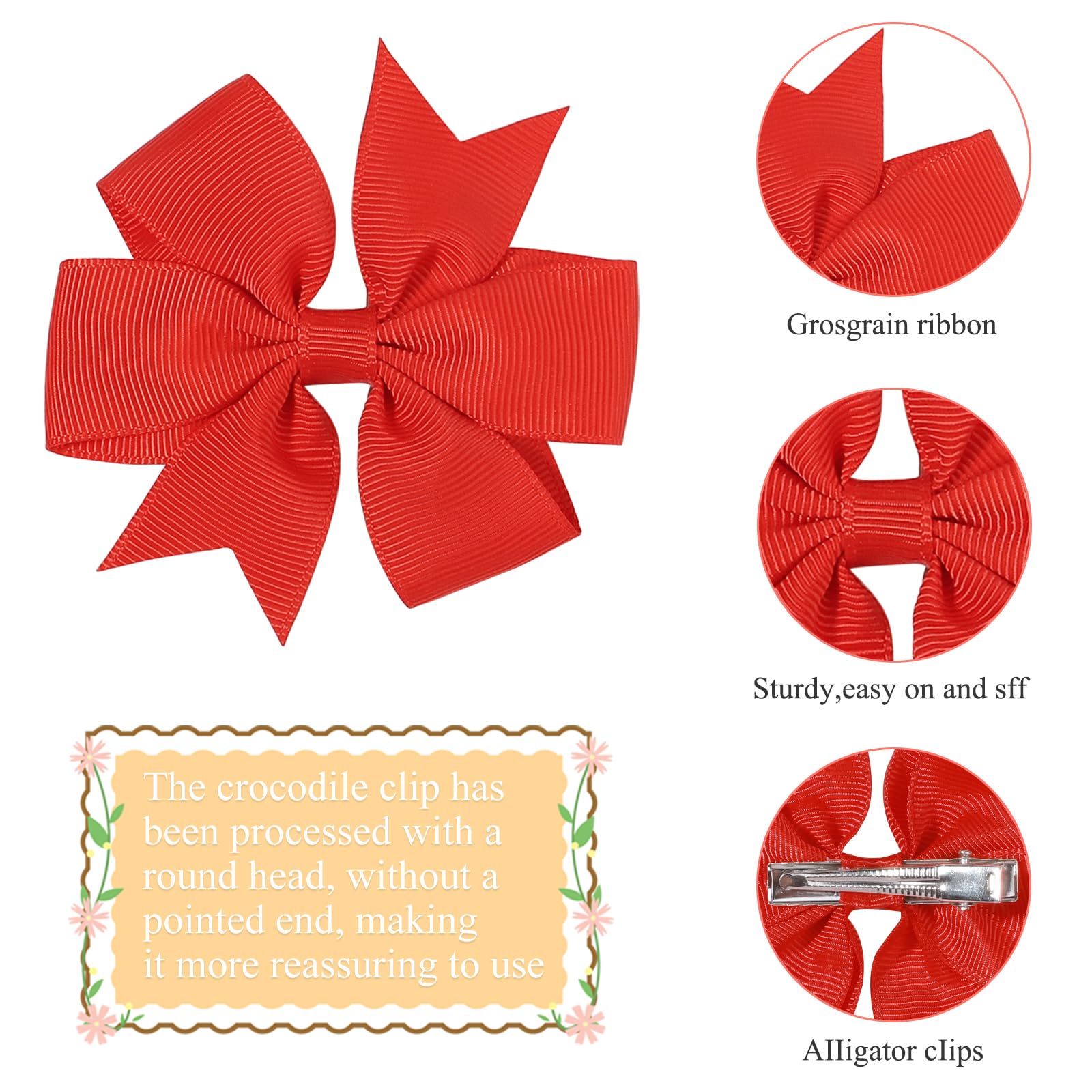 - Q: What materials are the hair bows made from? A: The hair bows are made from high-quality grosgrain ribbon and feature sturdy alligator clips for secure attachment.
