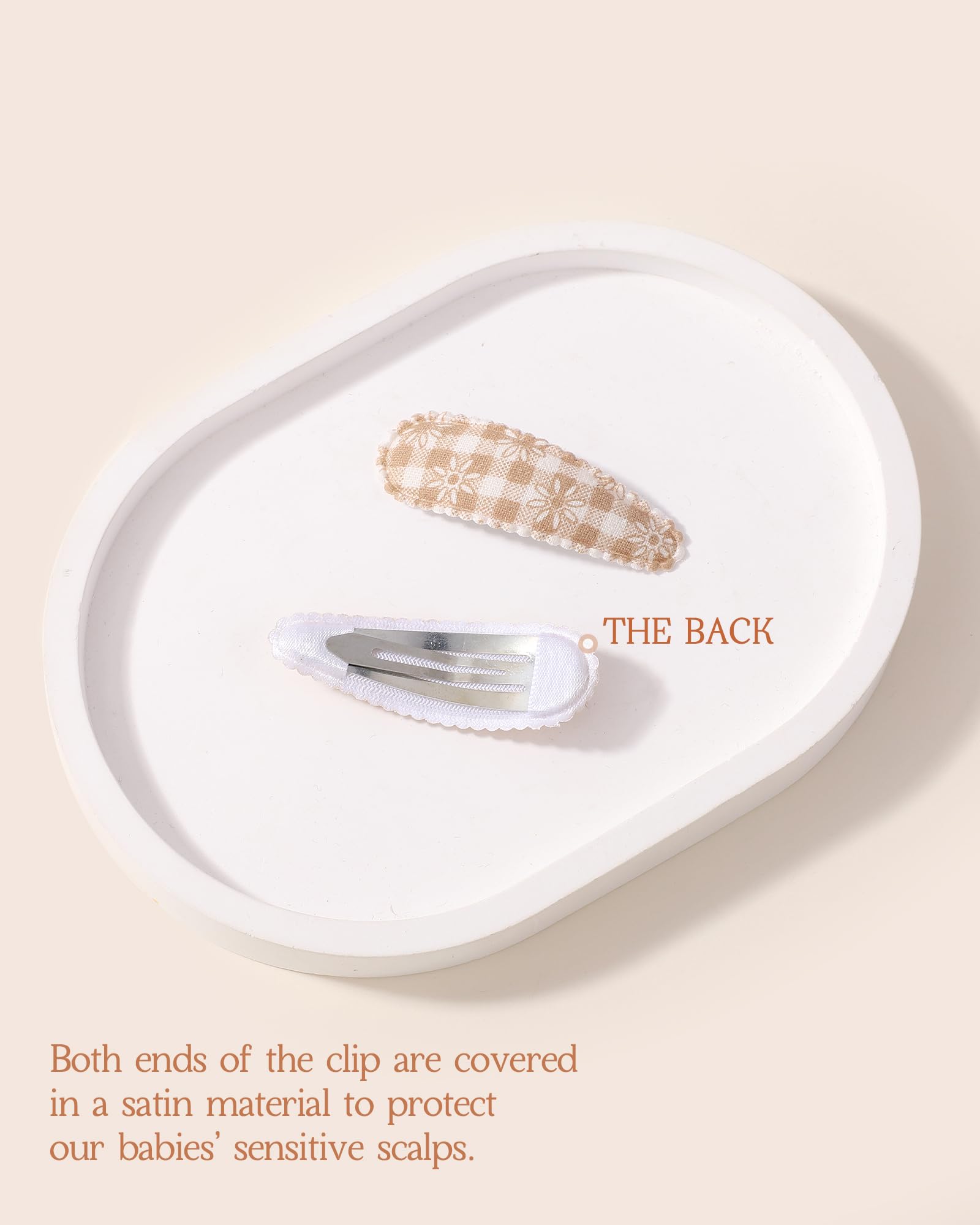- Q: How many hair clips are included in the set? A: The set includes 40 snap hair clips, featuring a variety of colors and prints.
