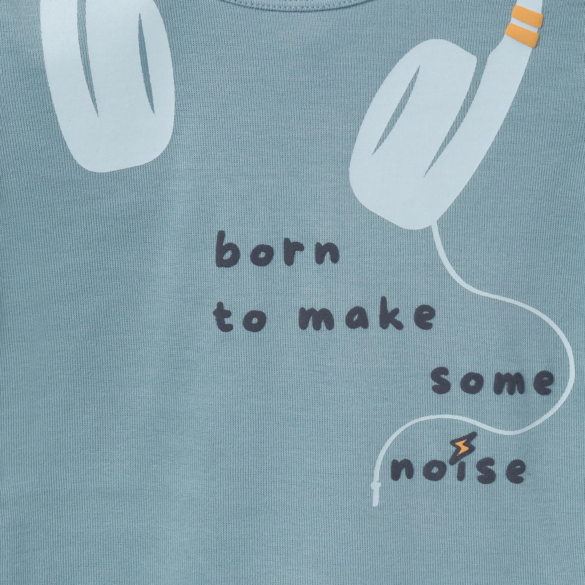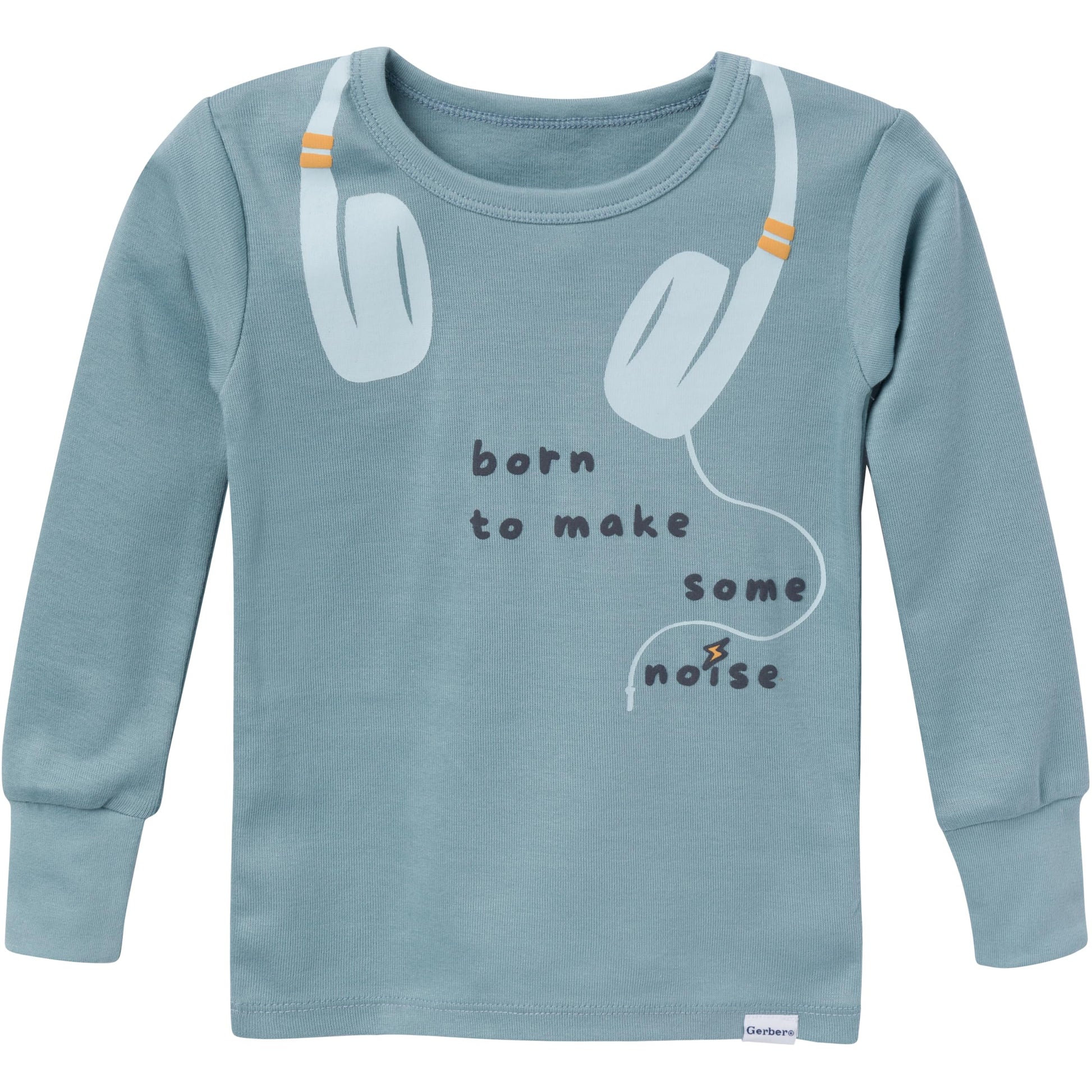- Q: Does the pajama set have any unique designs or prints? A: Yes, the pajama top features headphones with the text 'born to make some noise', adding a fun element for toddlers.