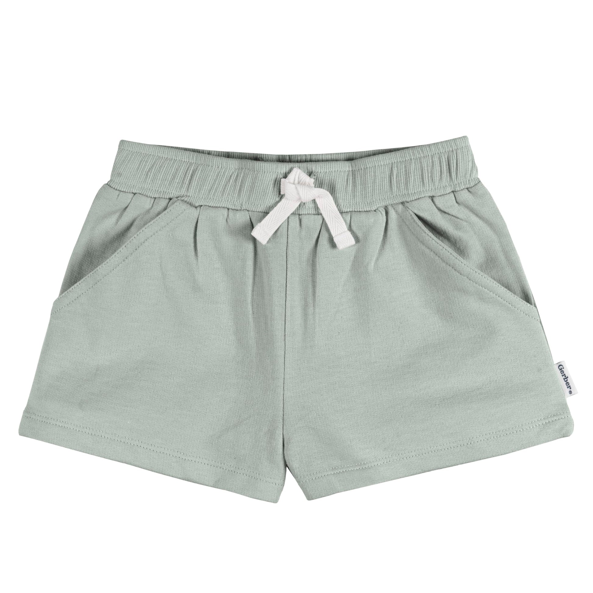- Q: What colors are available for these shorts? A: The knit shorts come in solid green, oatmeal, and dark grey heather, offering versatile options for your baby's wardrobe.