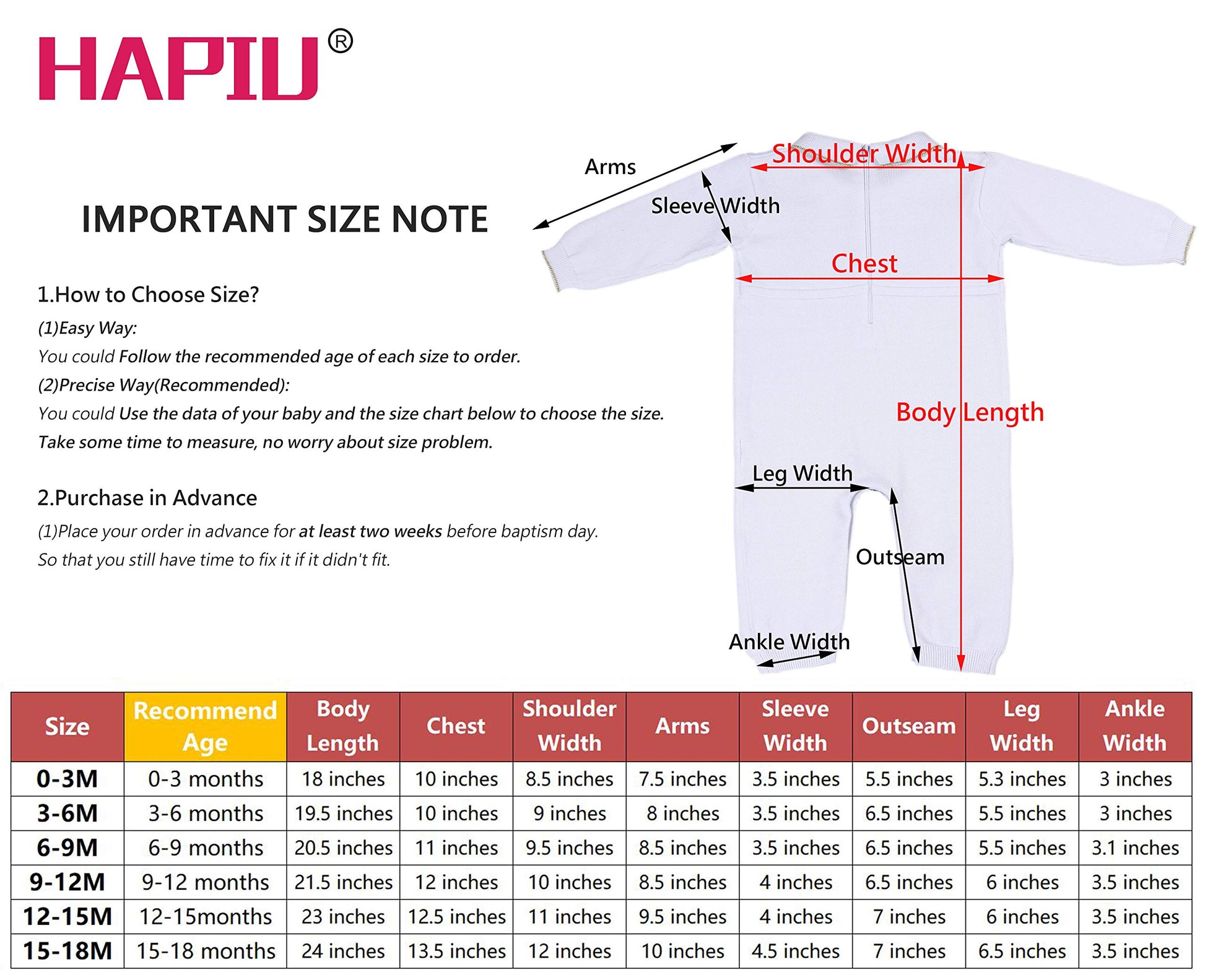 - Q: What size does the HAPIU Baby Boy Baptism Outfit fit? A: The outfit is designed for babies aged 9-12 months. Please refer to the size chart for specific measurements.