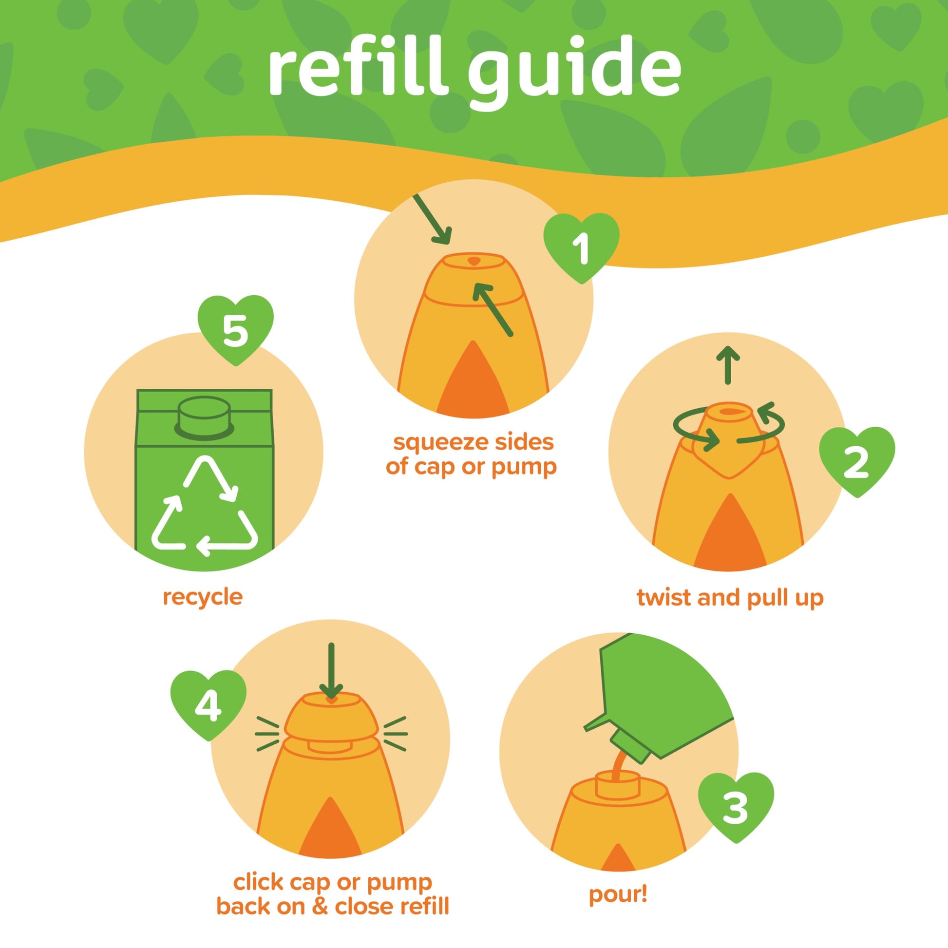 - Q: How can I refill my Johnson's Baby Shampoo bottles? A: To refill your bottles, squeeze the sides of the cap or pump, twist and pull up to remove, then pour the shampoo into the empty bottle and click the cap or pump back on.
