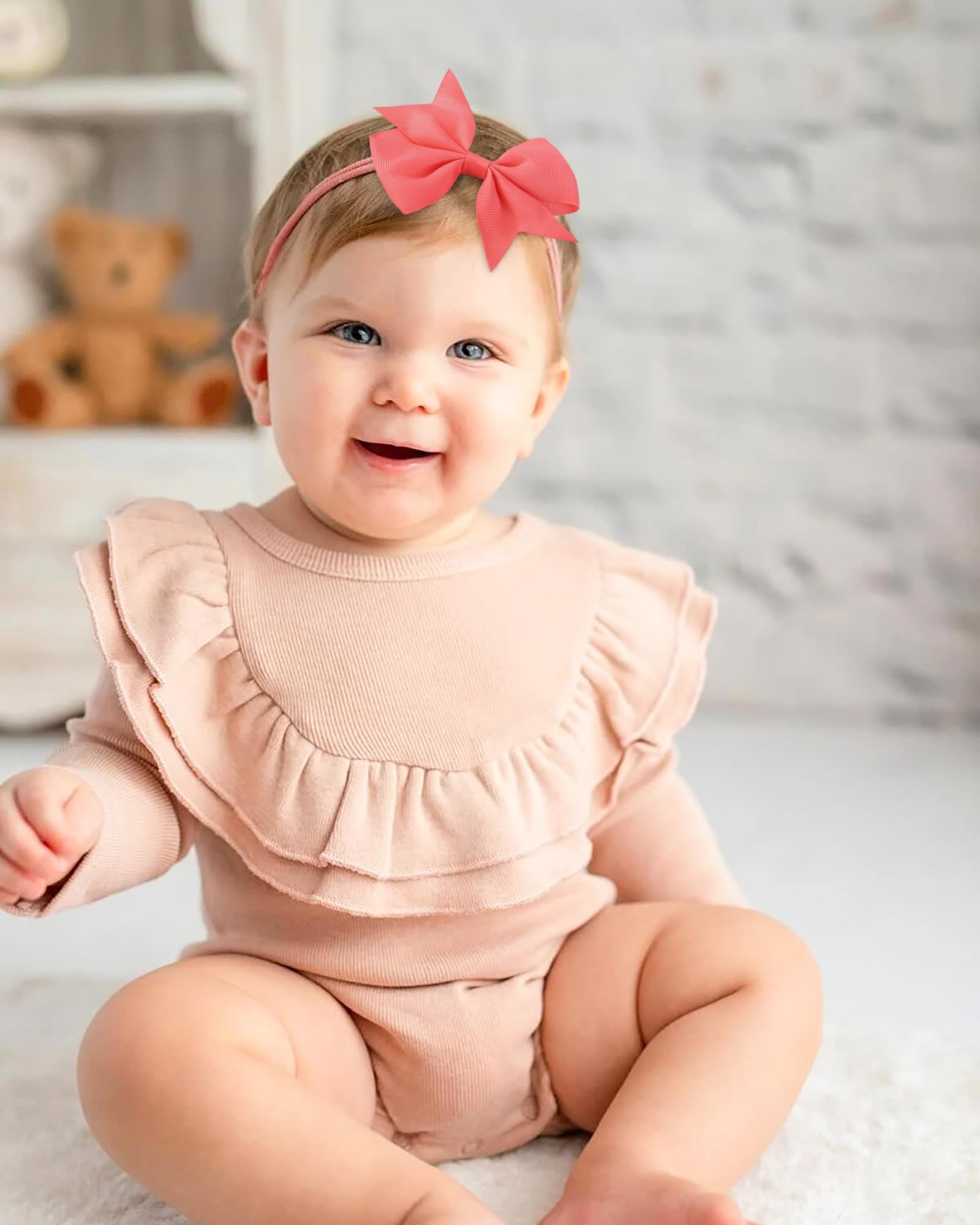 - Q: What materials are the hair bows made from? A: The hair bows are made from high-quality Grosgrain Ribbon and a stretchy elastic band, ensuring comfort without leaving marks on your baby's head.