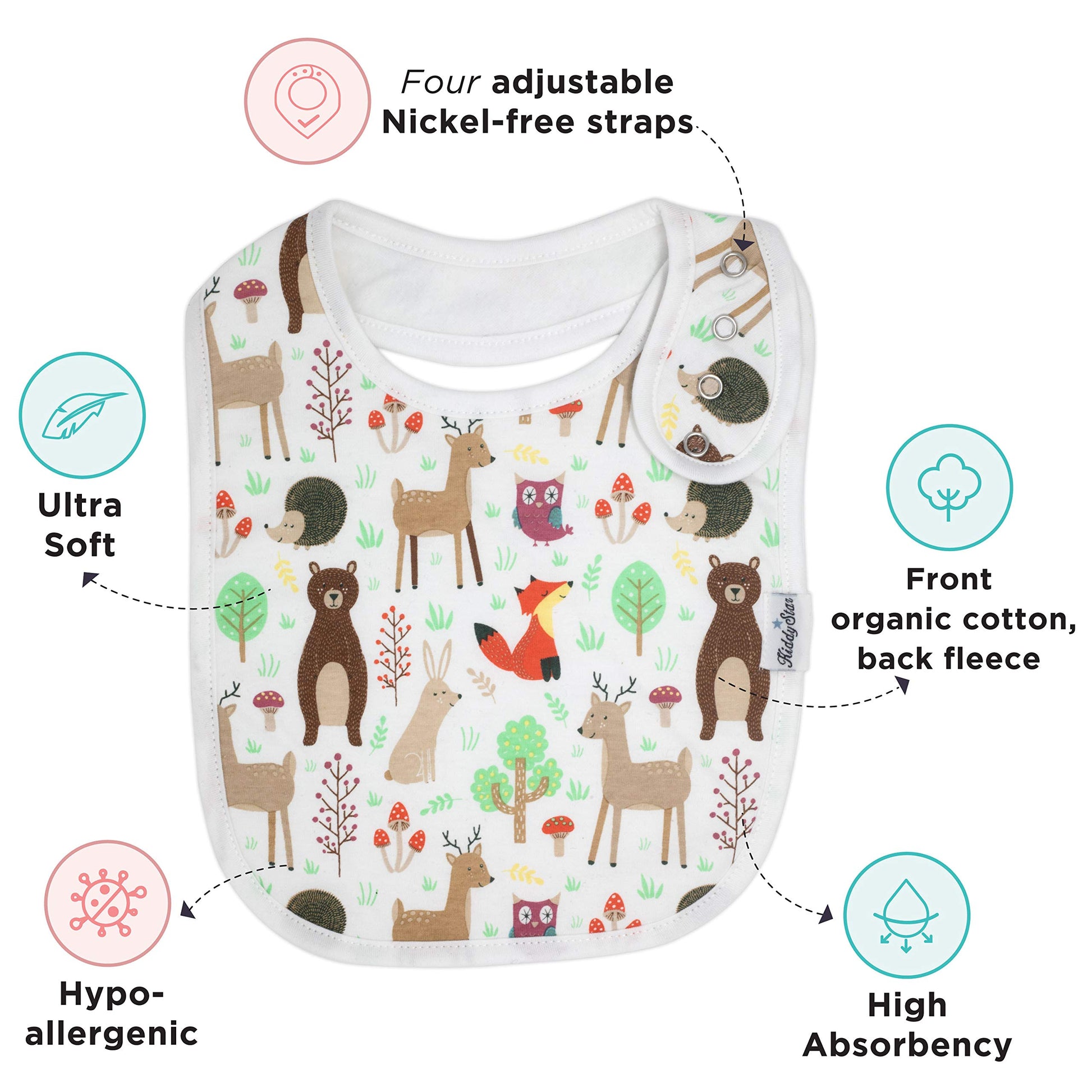 - Q: What features do the adjustable snap buttons provide? A: The adjustable snap buttons allow for a better fit as your baby grows, ensuring the bibs stay secure during use.