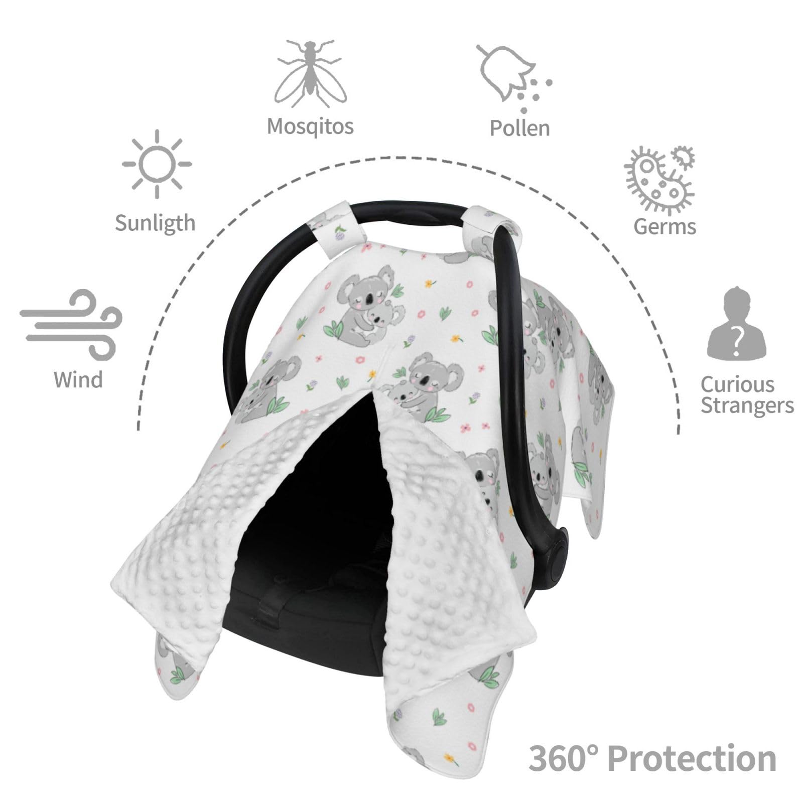 - Q: Is this product suitable as a gift for new parents? A: Yes, the ultra-soft plush fabric and adorable koala pattern make this car seat canopy cover a great gift for baby showers, birthdays, or any occasion.