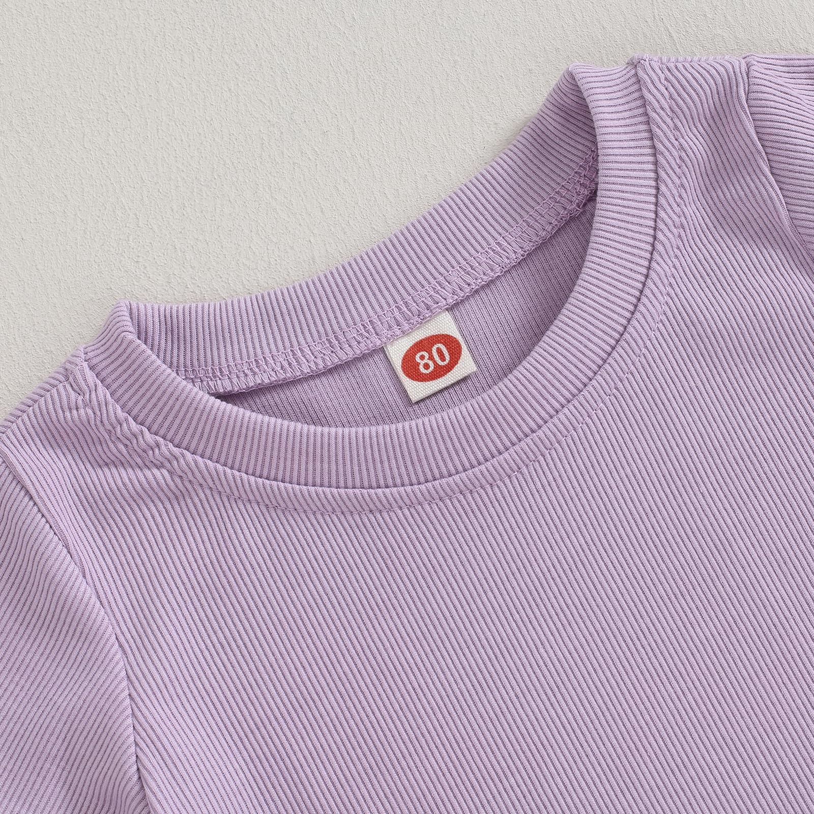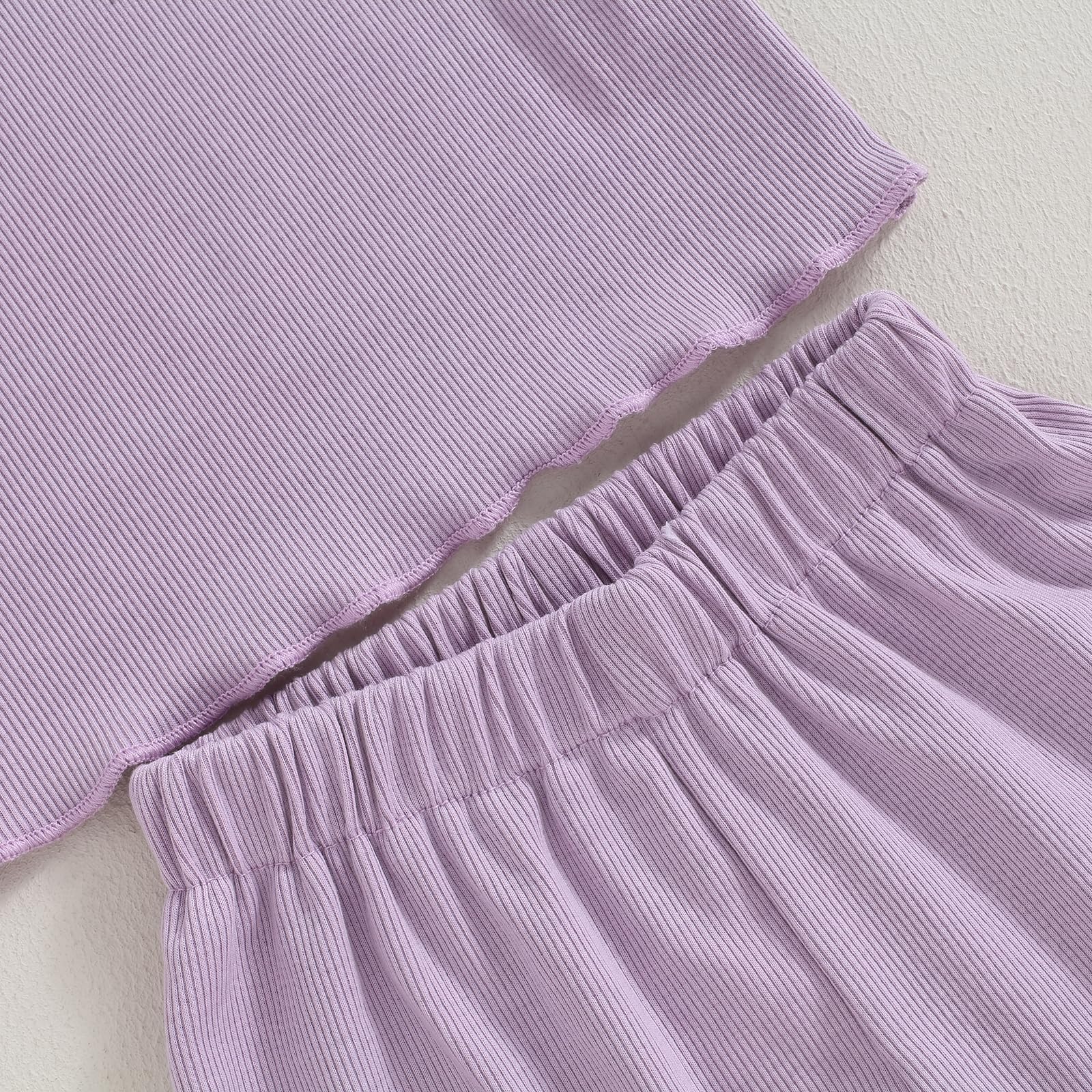 - Q: What design features does the outfit have? A: The outfit features a solid plain color design with a ribbed texture, short sleeves, and an elastic waistband for comfort.