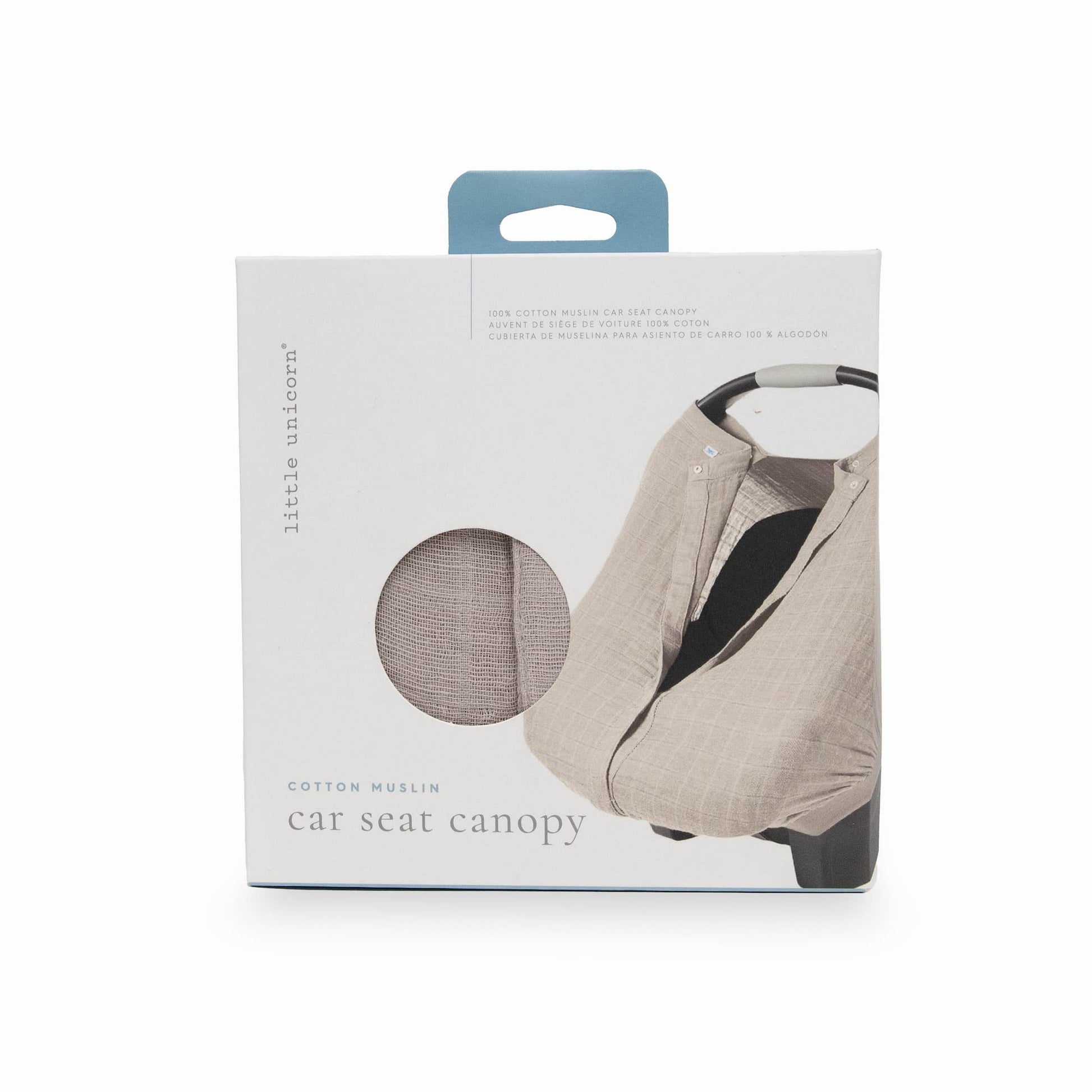 - Q: What material is the Little Unicorn car seat canopy made from? A: The Little Unicorn car seat canopy is made from 100% cotton muslin, which is soft, breathable, and lightweight.