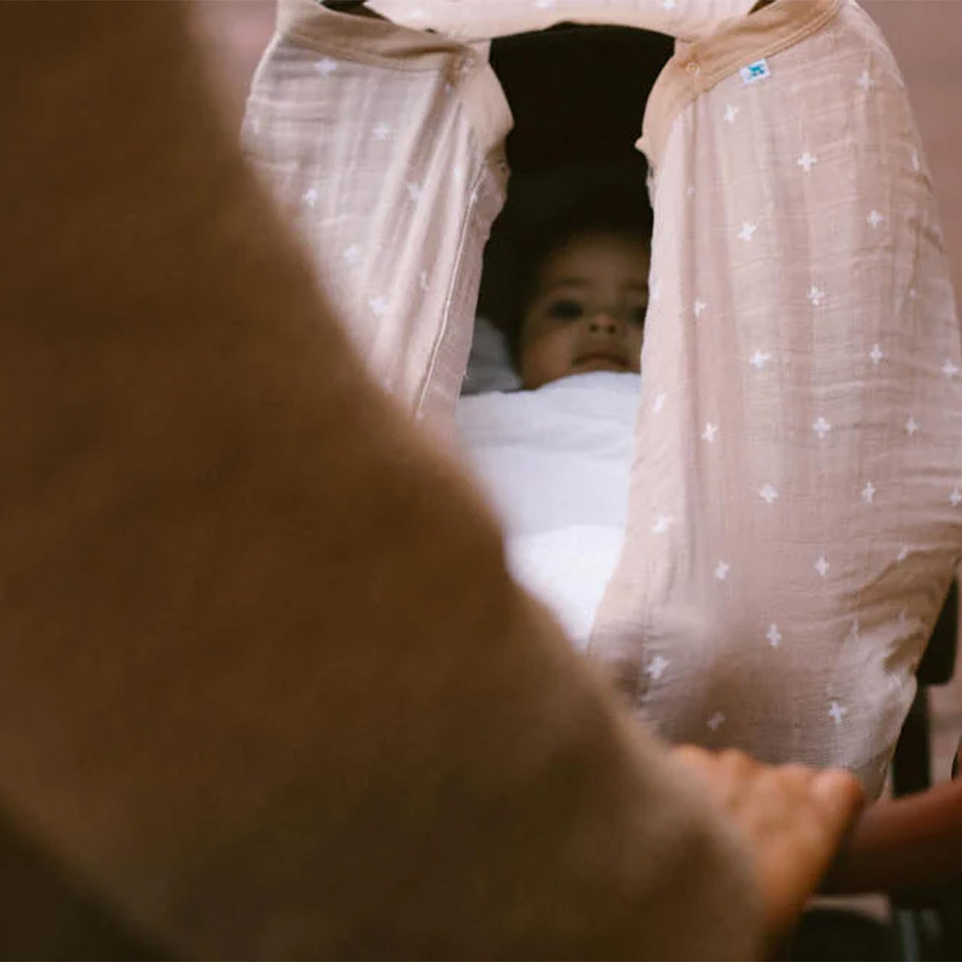- Q: What materials are used in the Little Unicorn Car Seat Canopy? A: The Little Unicorn Car Seat Canopy is crafted from 100% cotton muslin, providing a soft and breathable cover for your baby.