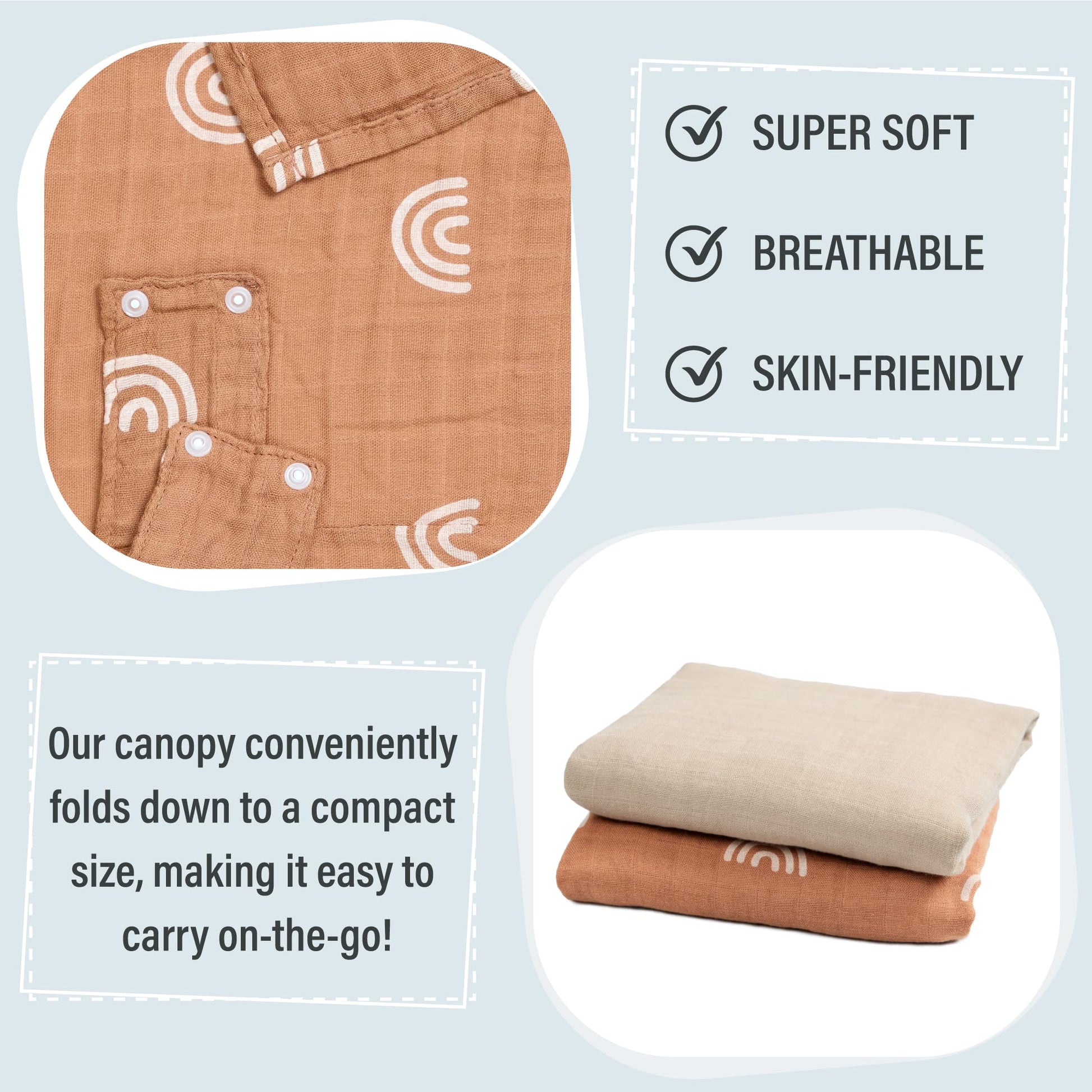 - Q: Is this car seat cover suitable for both boys and girls? A: Yes, the Meracorallo Muslin Baby Car Seat Cover features a boho rainbow design that is suitable for both baby boys and girls.