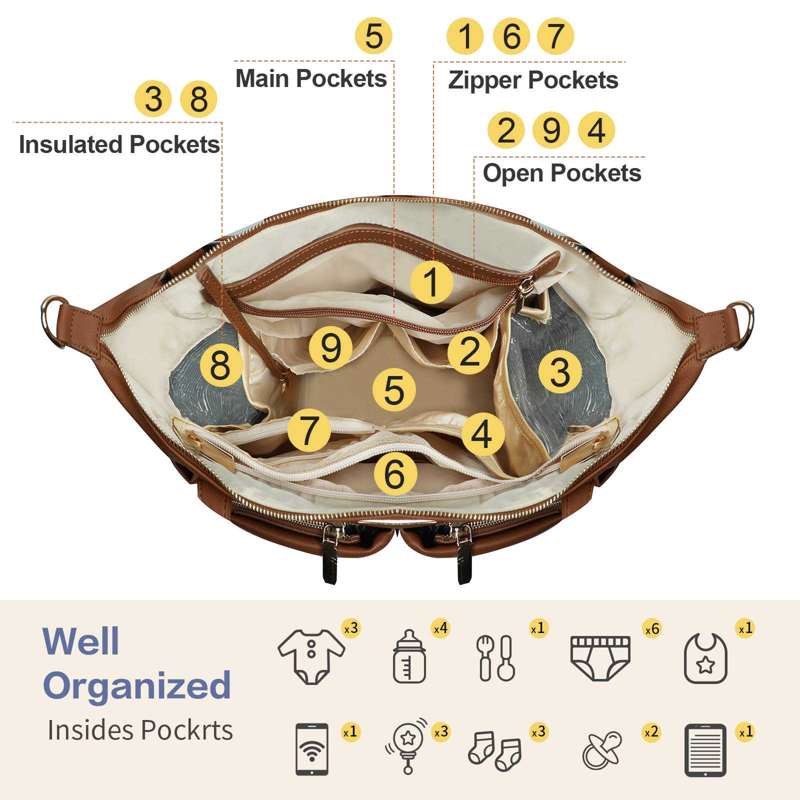 - Q: Does the bag include any insulated pockets? A: Yes, the Miss Fong Diaper Bag features 4 insulated pockets designed to keep baby bottles at the right temperature.