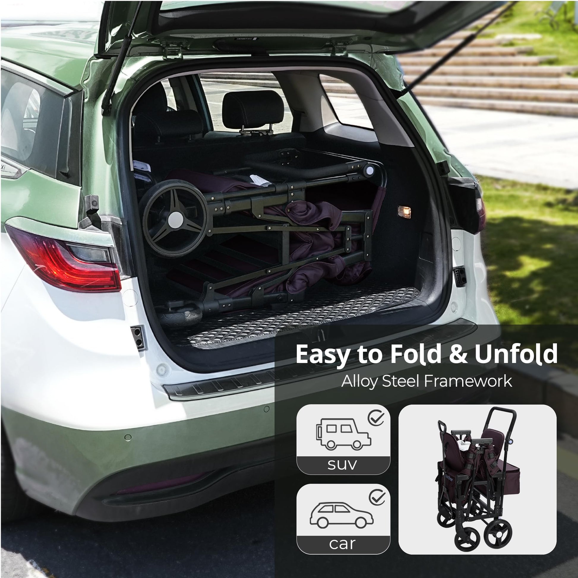 - Q: Is the stroller wagon suitable for infants? A: The MOMFANN Stroller Wagon is designed for toddlers and infants, featuring a 5-point harness and adjustable seats to provide safety and comfort for younger children.