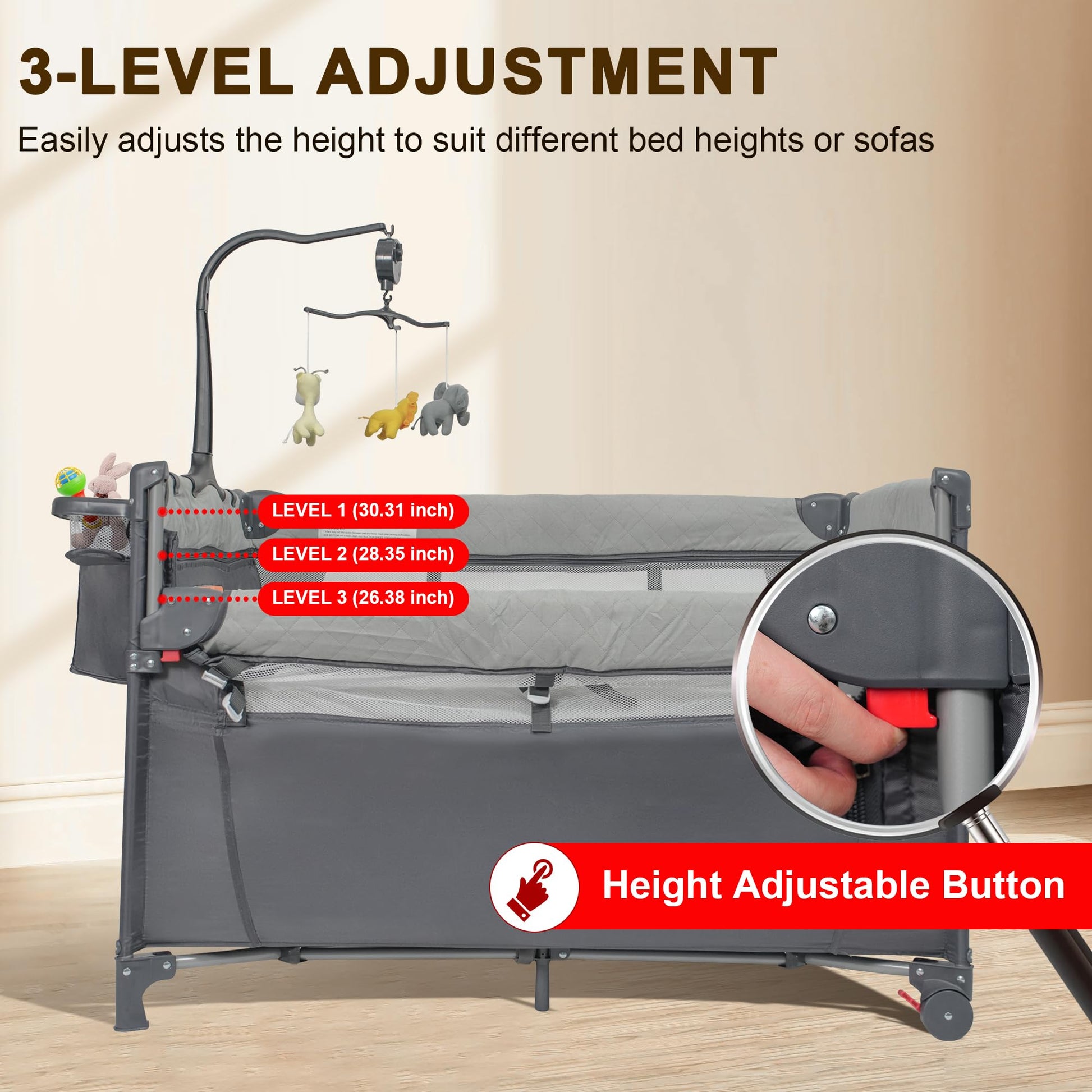 - Q: Can the height of the bedside sleeper be adjusted? A: Yes, the MOOITZ Baby Bedside Sleeper has an adjustable height feature that allows you to select from four different heights: 18 inches, 21 inches, 24.5 inches, and 30.5 inches.