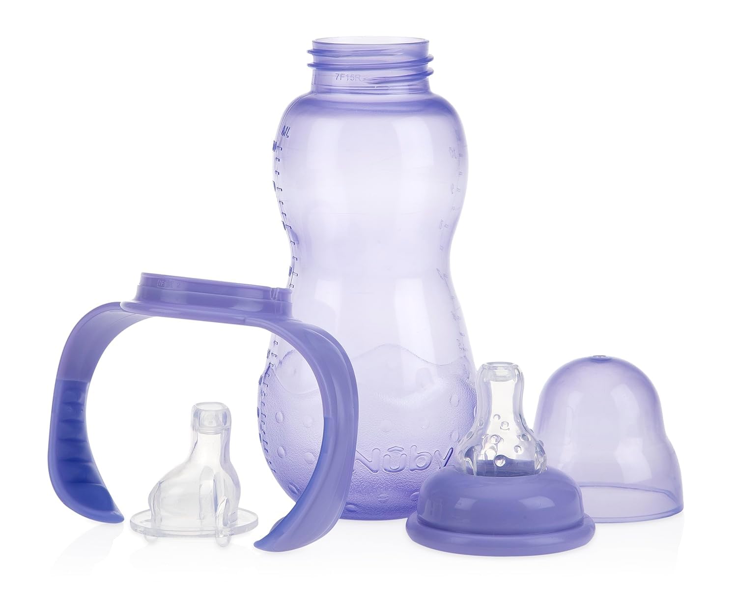 - Q: How does the Vari-Flo valve work on the Nuby bottle? A: The Vari-Flo valve allows your baby to control the flow of liquid, helping to prevent spills and enabling a smoother transition from bottle to cup.