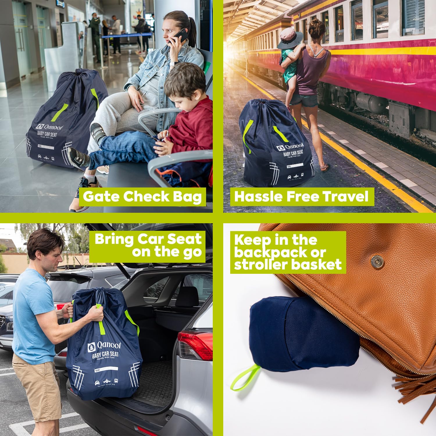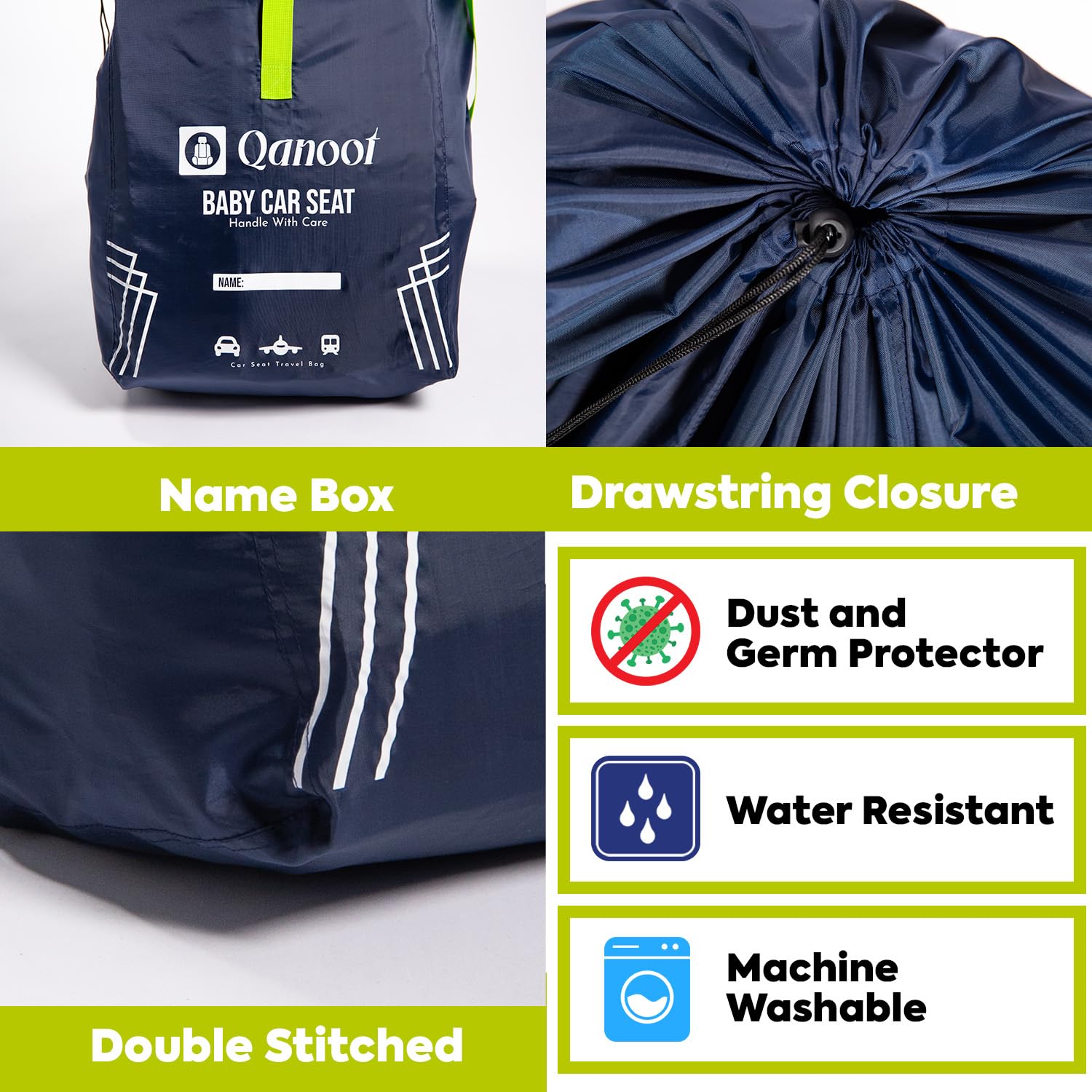 - Q: How does the bag protect the car seat during travel? A: The Qanoot Car Seat Travel Bag protects your car seat from physical damage, dirt, and dust through its durable construction and secure design.