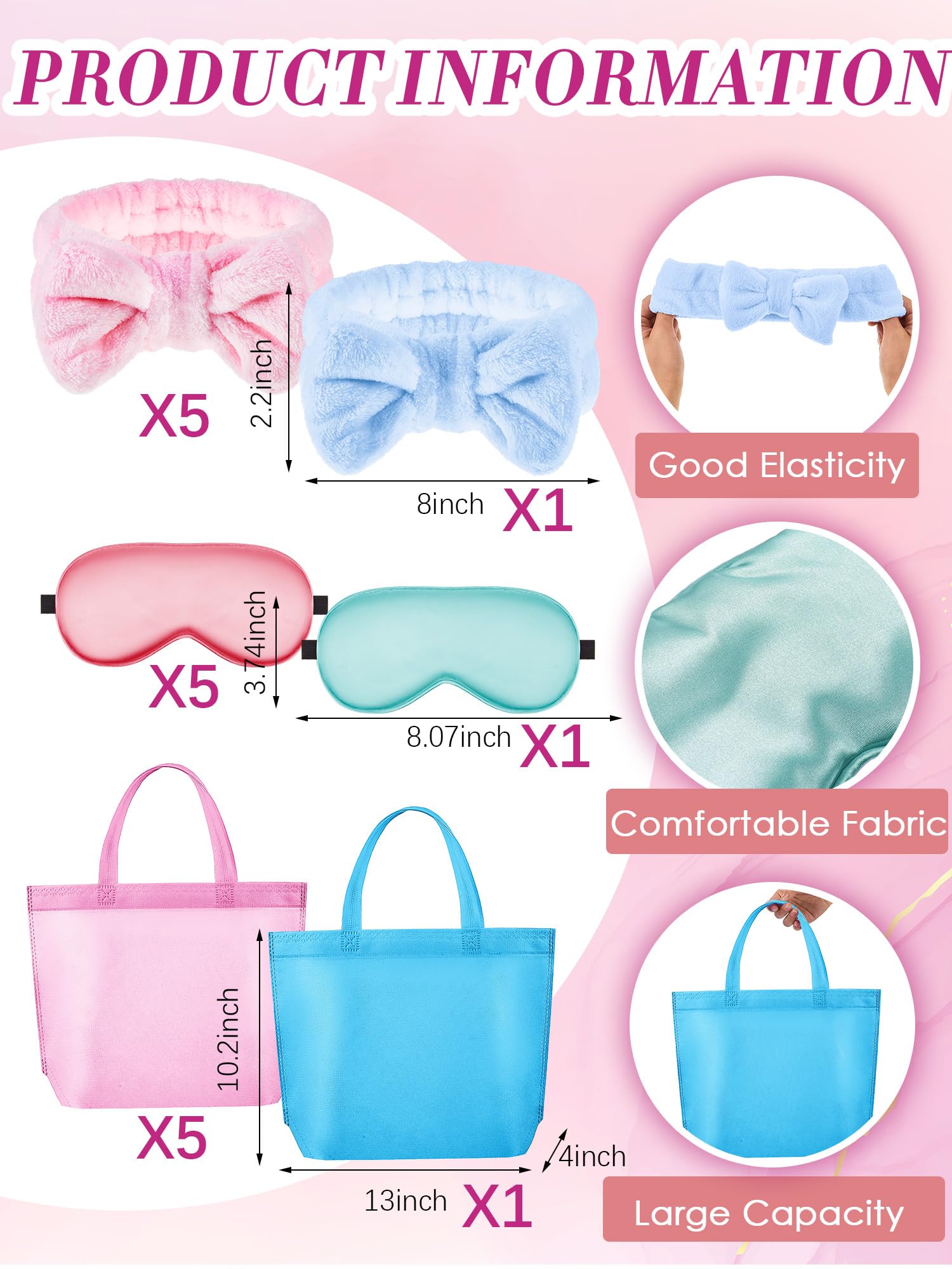 - Q: How many pieces are included in the Sintuff Kids Spa Party Supplies set? A: The set includes a total of 24 pieces: 6 cute spa bathrobes, 6 plush headbands, 6 satin eye masks, and 6 tote bags.