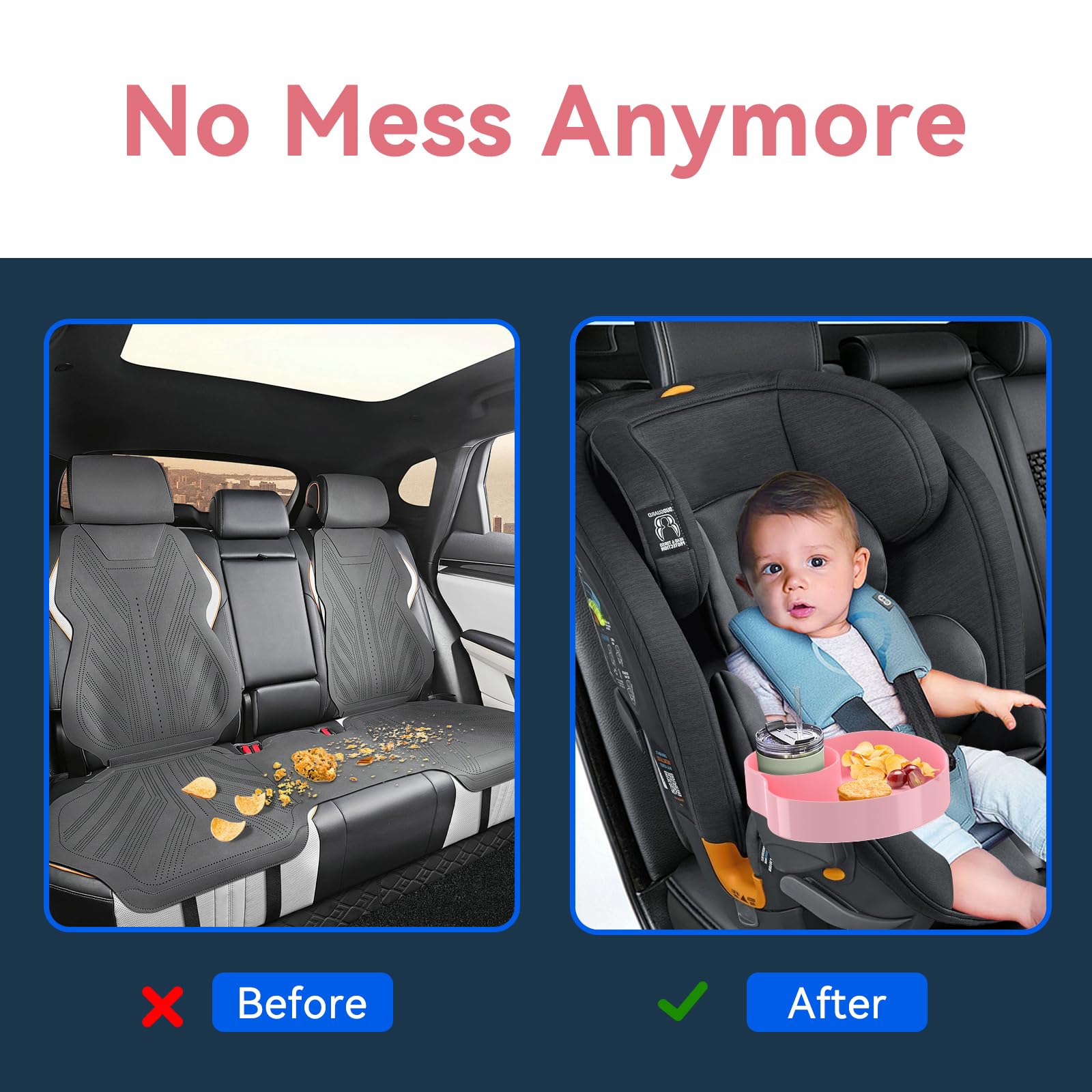 - Q: What is the size of the kids car seat tray? A: The car seat food tray has a diameter of up to 7.85 inches, providing ample space for snacks and meals.