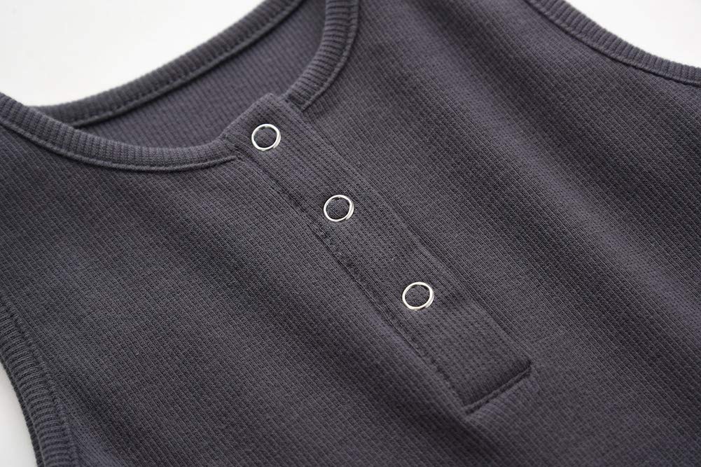 Teach Leanbh Baby Romper Cotton Sleeveless Button Down One Piece Linen Jumpsuit Coverall 3-24 Months (Army Green, 3-6 Months)