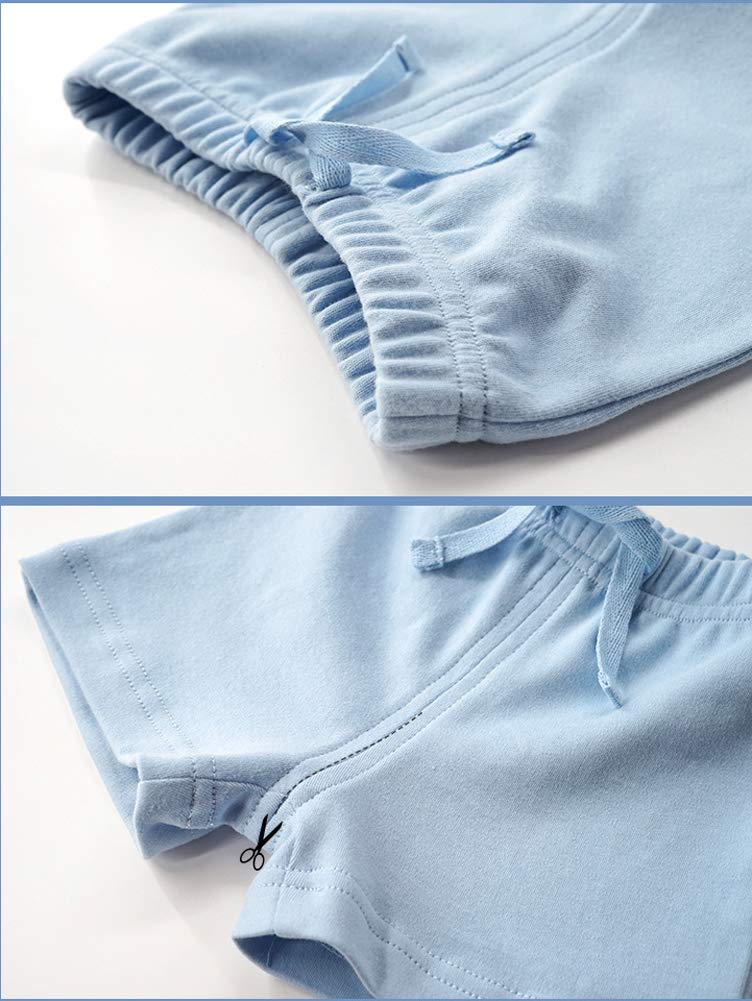 • Q: Are there any tags that could irritate my baby's skin? A: No, the shorts have all external tags removed and replaced with heat-seal labels for a friendly design.