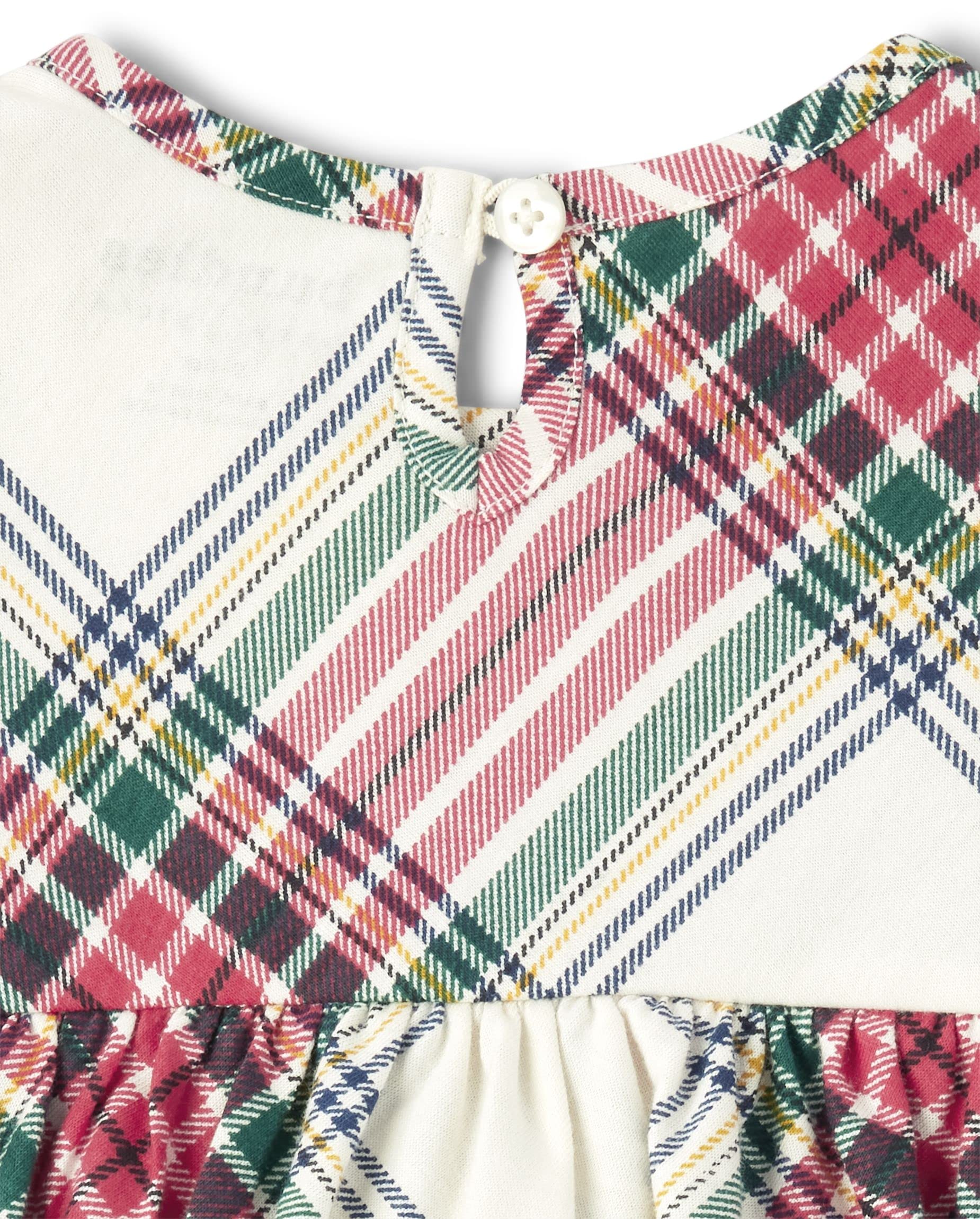 • Q: What is included in the 2-pack of bodysuits? A: The 2-pack includes one bodysuit in red plaid and another in white stripe, both designed for easy changing and comfort.