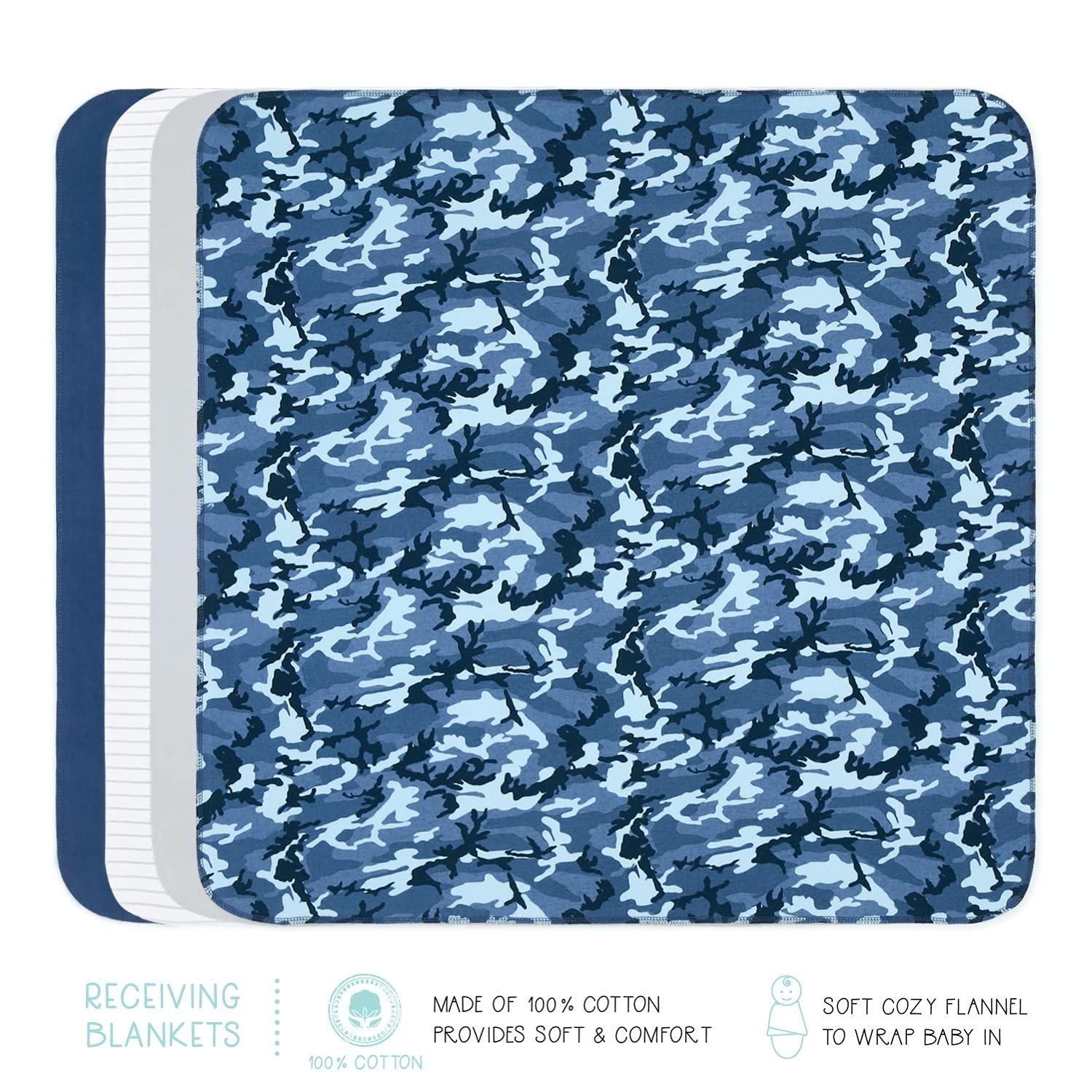 - Q: What is included in The Peanutshell Newborn Layette Gift Set? A: The set includes 23 pieces: 4 short sleeve bodysuits, 3 long sleeve bodysuits, 1 blue camouflage zipper sleep sack, 5 coordinating beanies, 3 pairs of scratch prevention mittens, 3 burp cloths, and 4 receiving blankets measuring 30 inches by 30 inches.