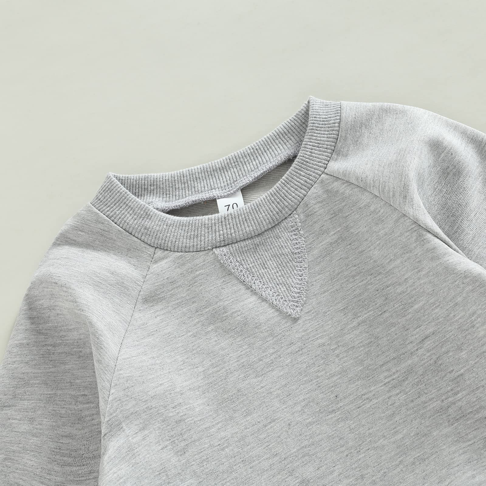- Q: Is the design of this outfit comfortable for toddlers? A: Yes, the outfit features a casual design with a solid color crew neck and elastic waist pants, providing comfort for active toddlers.
