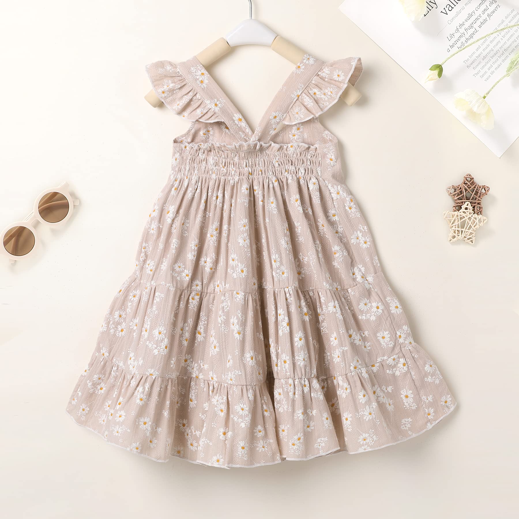 - Q: What is the design of the YOUNGER TREE Toddler Dress? A: The dress features a floral print with flutter sleeves, adding a cute and adorable touch to your little girl's outfit.