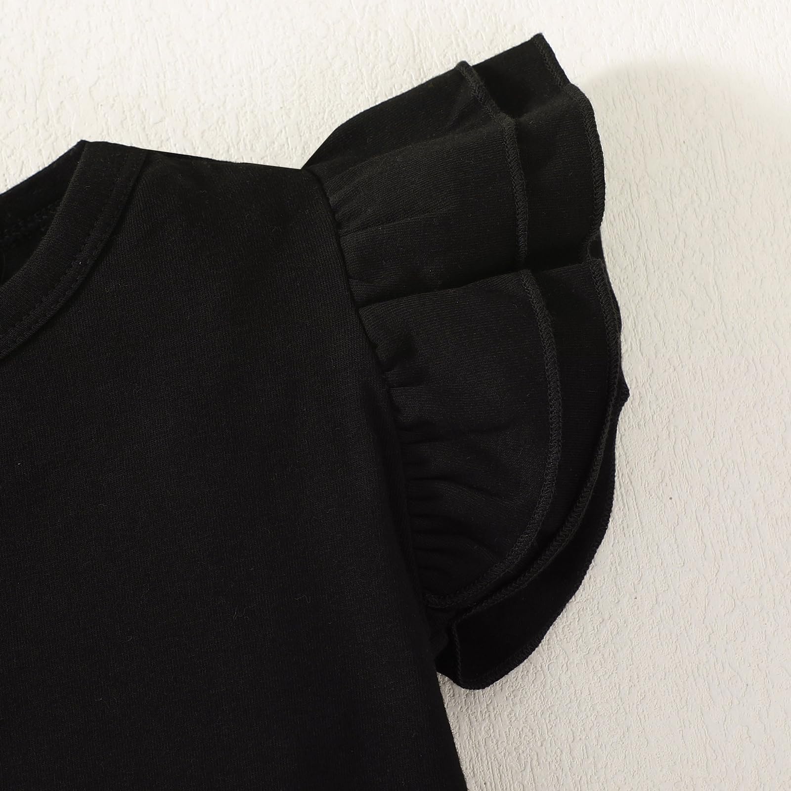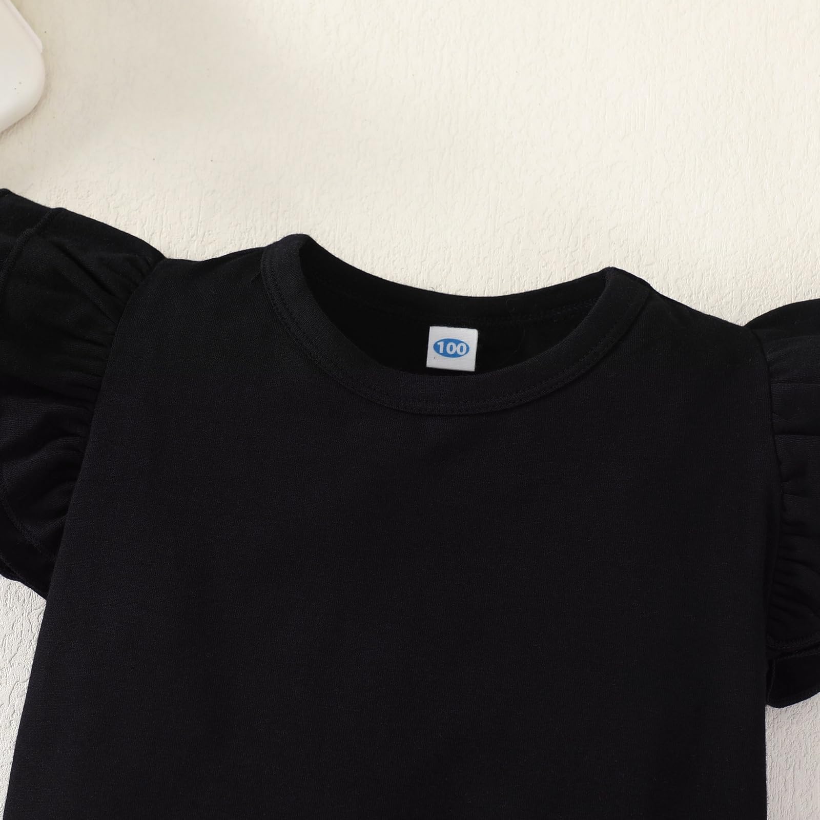 - Q: What type of design does the T-shirt feature? A: The T-shirt features a simple and fashionable basic style with ruffle sleeves, adding a playful and cute element.