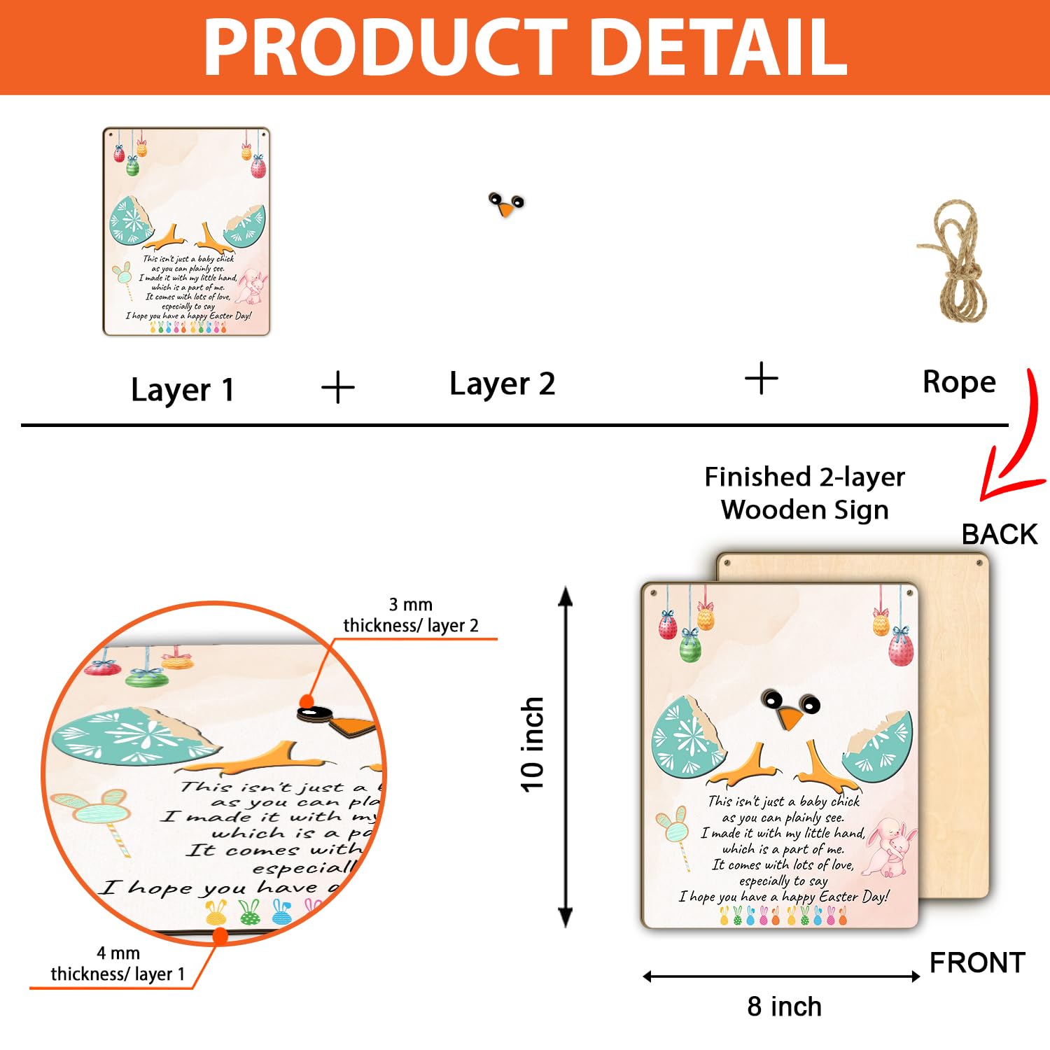 • Q: What type of crafts can I create with this sign? A: You can create handprints or footprints on the sign and decorate it with chick's eyes and nose using double-sided tape.