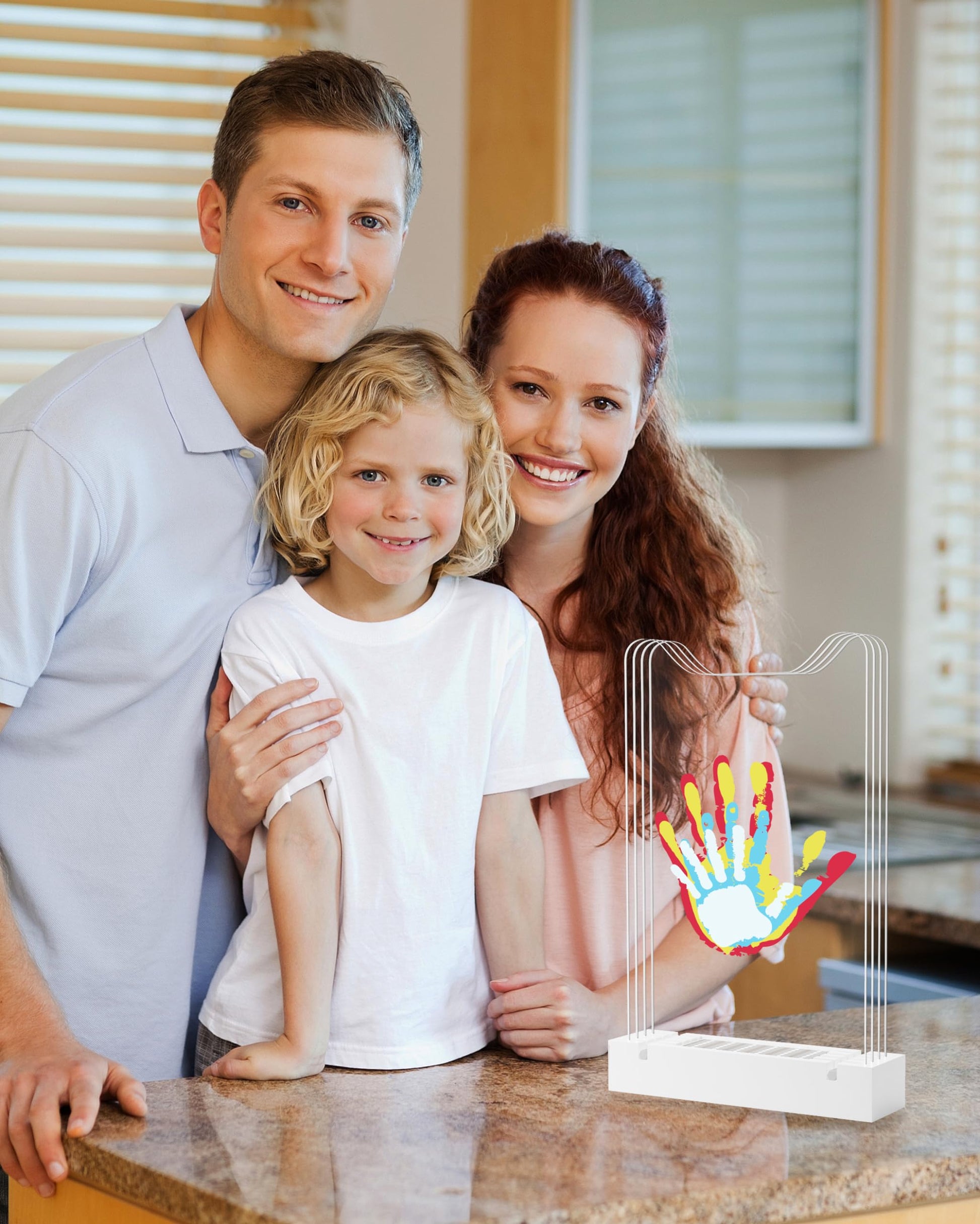 - Q: What is included in the Family Handprint Kit? A: The Family Handprint Kit includes four pieces of clear acrylic, a pine base, a paintbrush, an erasable pen, six bottles of non-toxic paint, and an instruction manual.