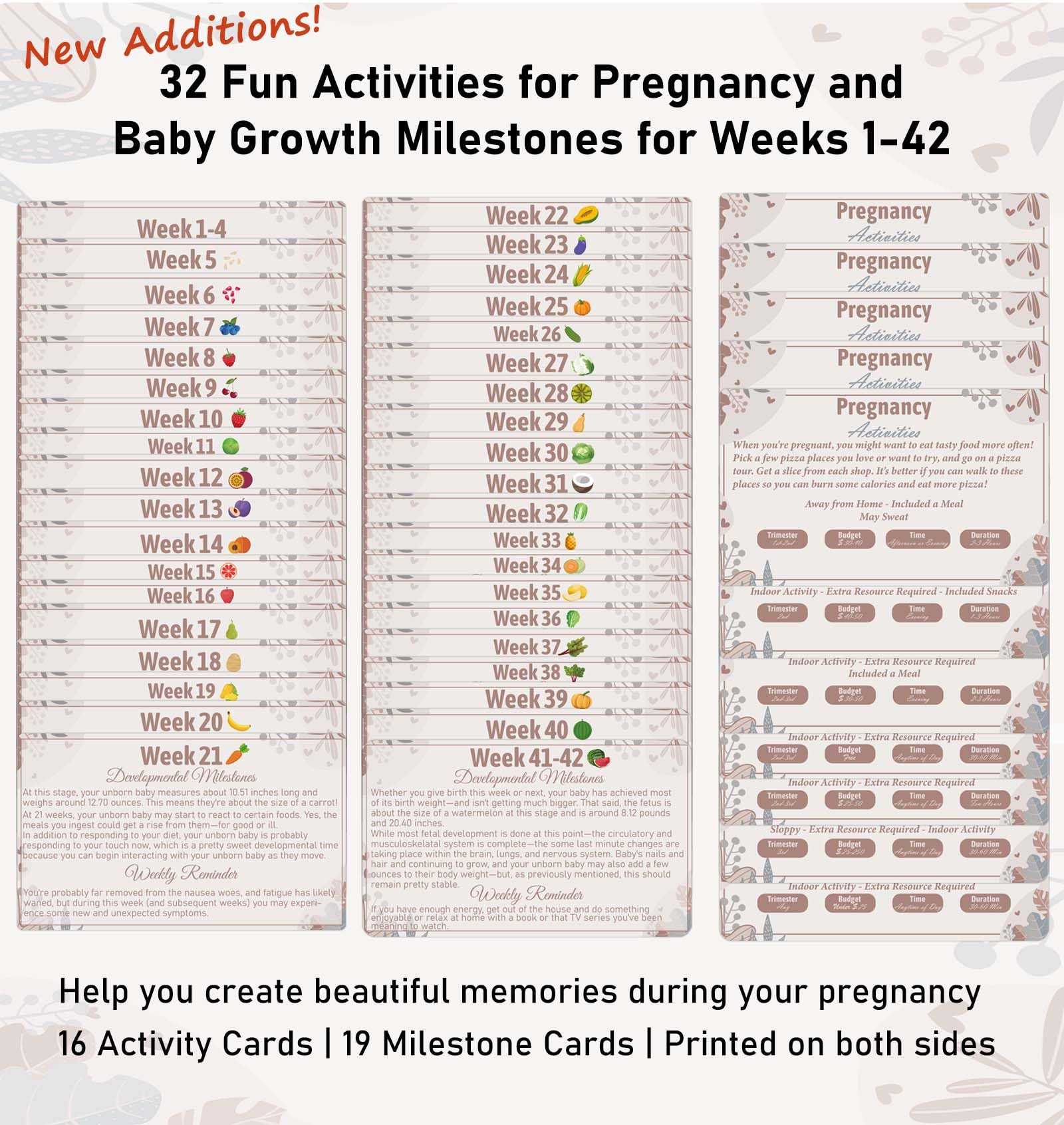 - Q: How do the pregnancy activities cards work? A: The activities cards offer 32 fun and engaging tasks for expectant mothers to complete, with options suitable for any trimester.