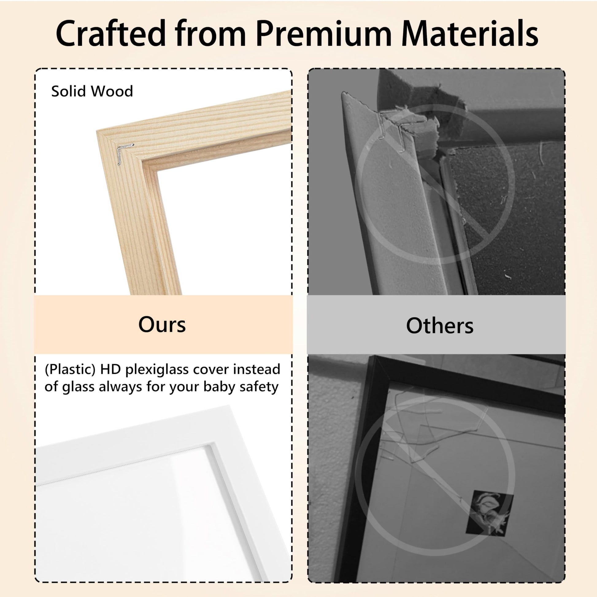 - Q: What material is the HAMUIERS Sonogram Signature Frame made from? A: The frame is made of solid wood with a plastic plexiglass cover for safety.