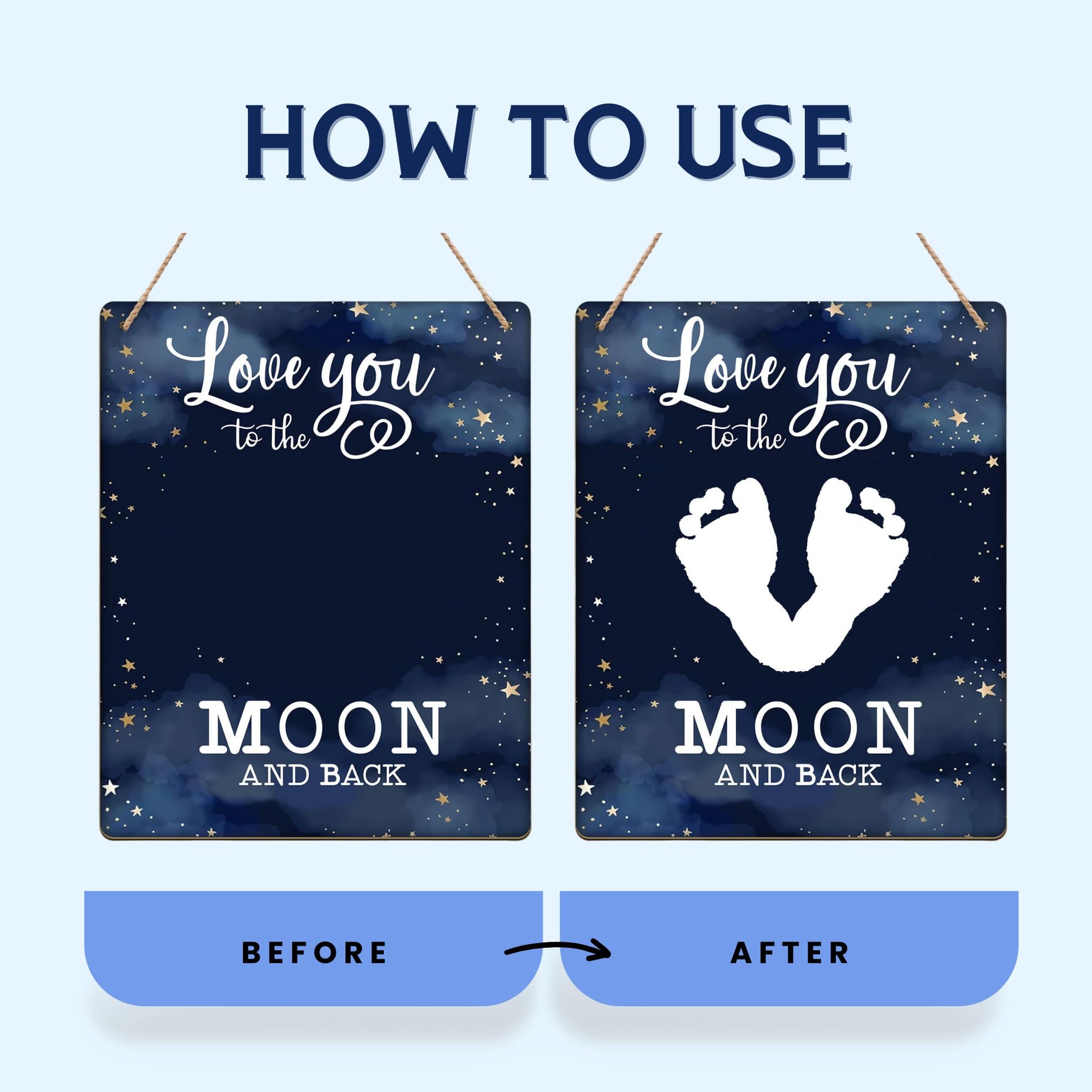 - Q: What type of artwork can I create with this sign? A: You can create handprints, footprints, or bum prints to capture your child's milestones and special moments.