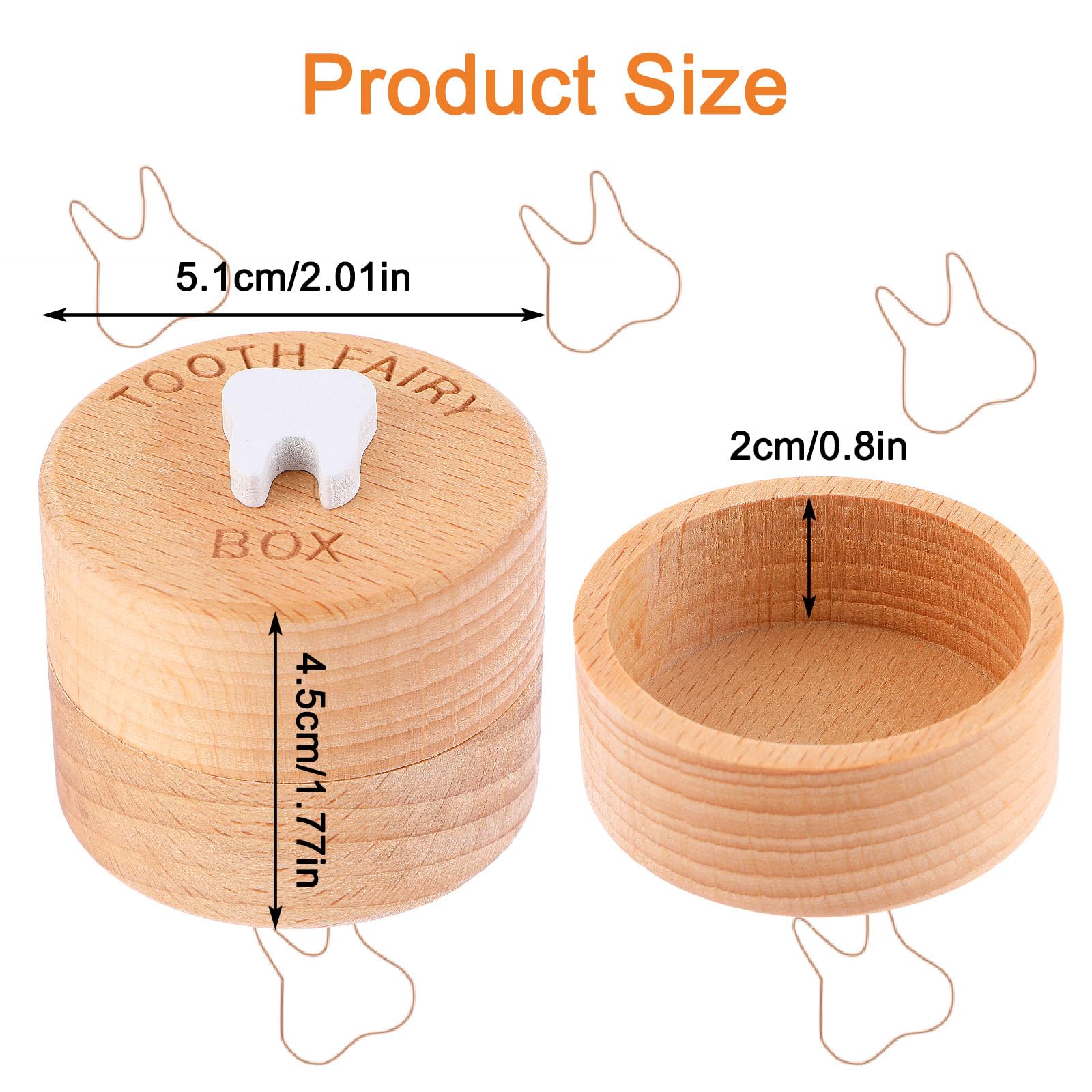 - Q: What are the dimensions of the Tooth Fairy Box? A: The dimensions of the Tooth Fairy Box are 5 centimeters by 5 centimeters by 4 centimeters, which is approximately 1.97 inches by 1.97 inches by 1.57 inches.