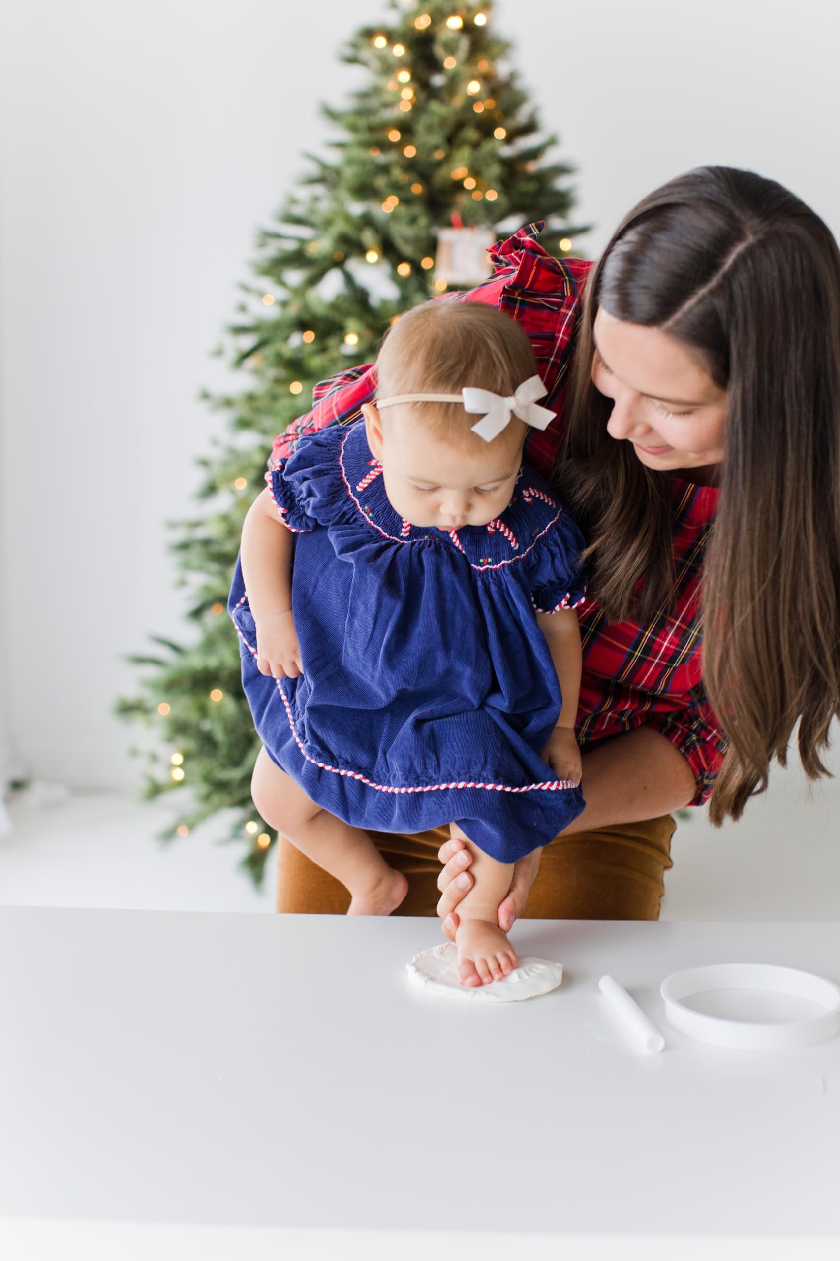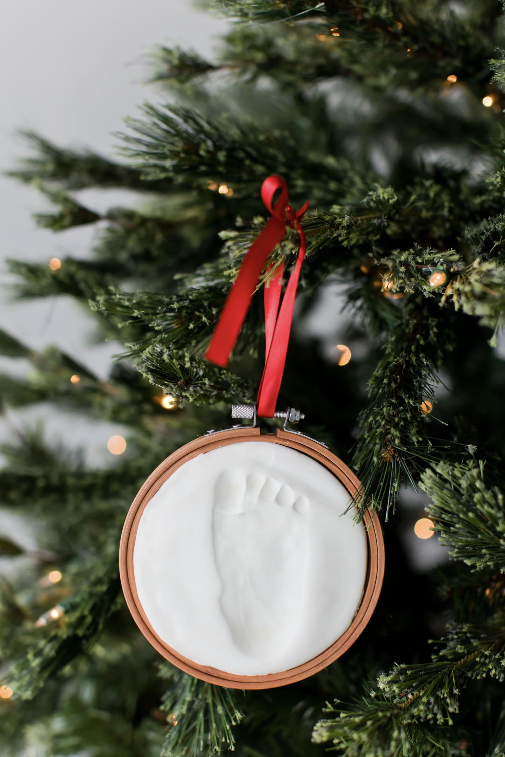Pearhead Baby Prints Hoop Christmas Ornament, Newborn Handprint Or Footprint Holiday Keepsake Kit, Easy No-Bake Diy Clay Impress
