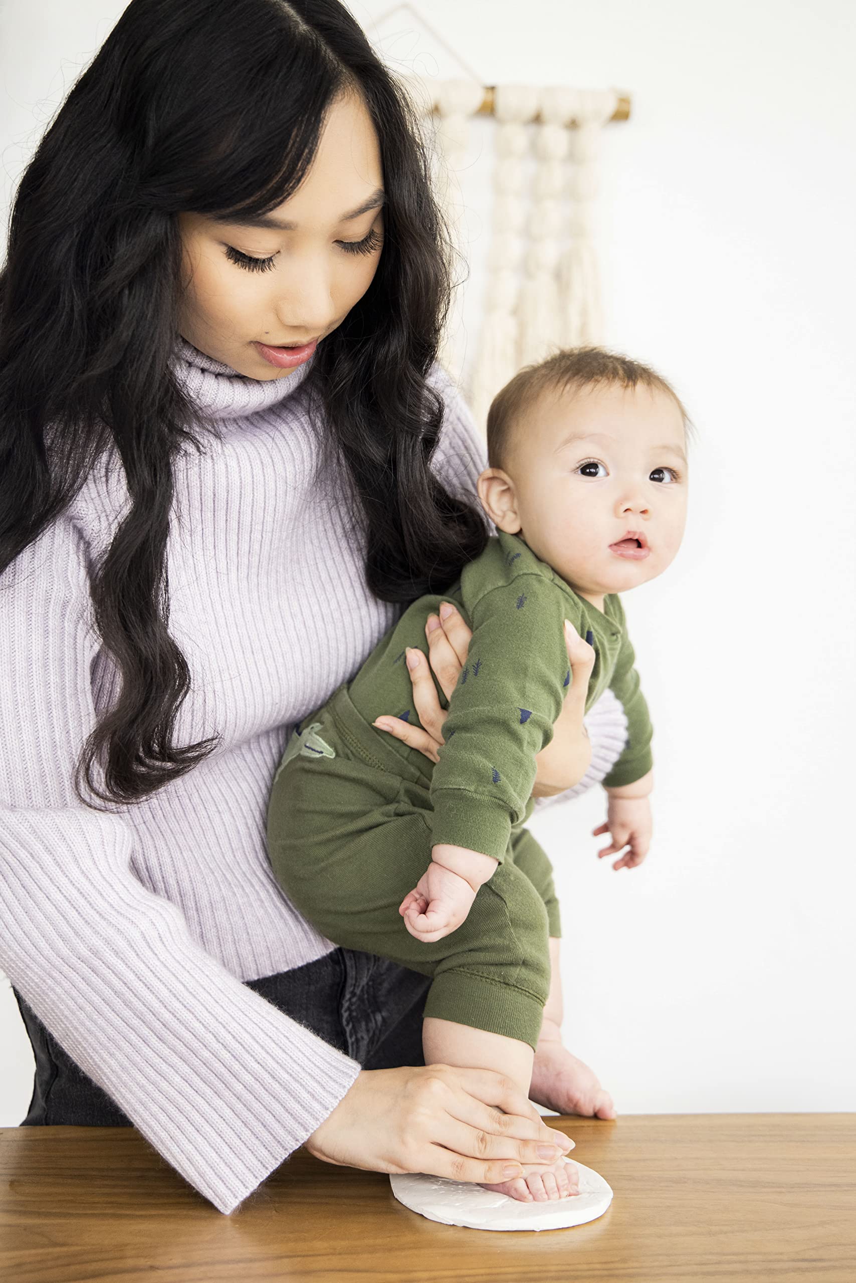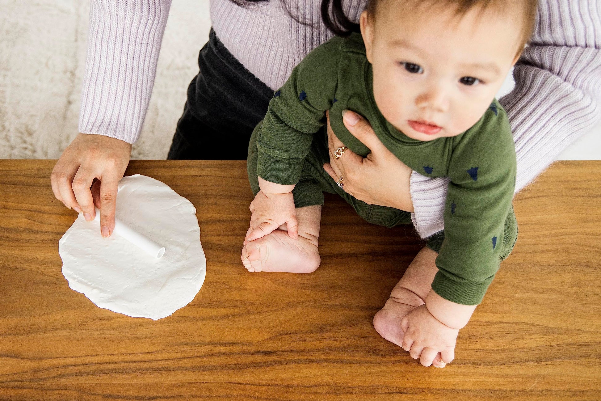 - Q: How do I create a handprint or footprint impression? A: To create an impression, simply knead the clay, roll it out, and press your baby's hand or foot into the clay. You can redo it as many times as needed until you achieve the desired impression.