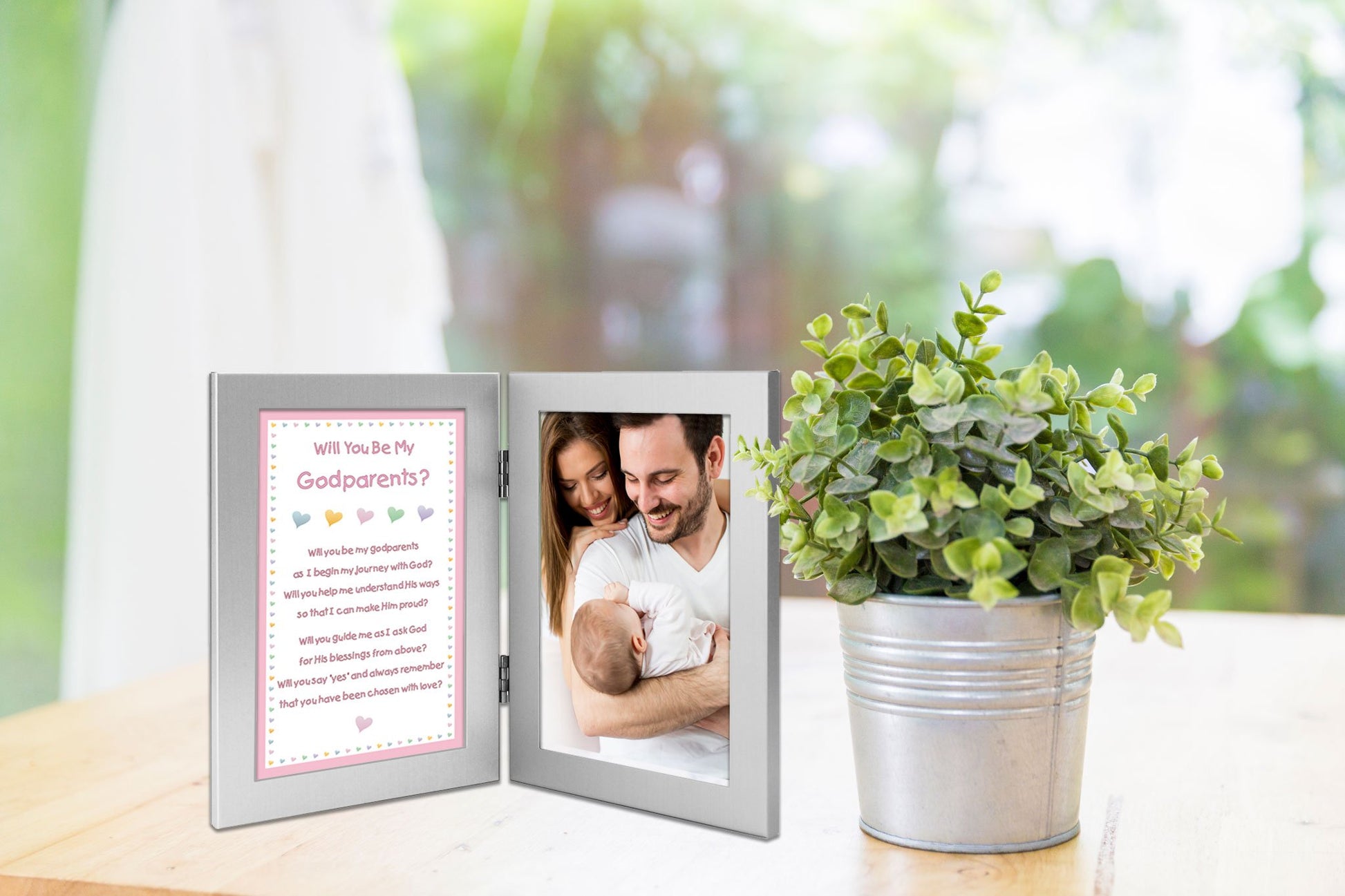 - Q: What type of poem is included with the frame? A: The frame features a touching poem written in a child-friendly typeface, expressing the sentiment of asking someone to be a Godparent.