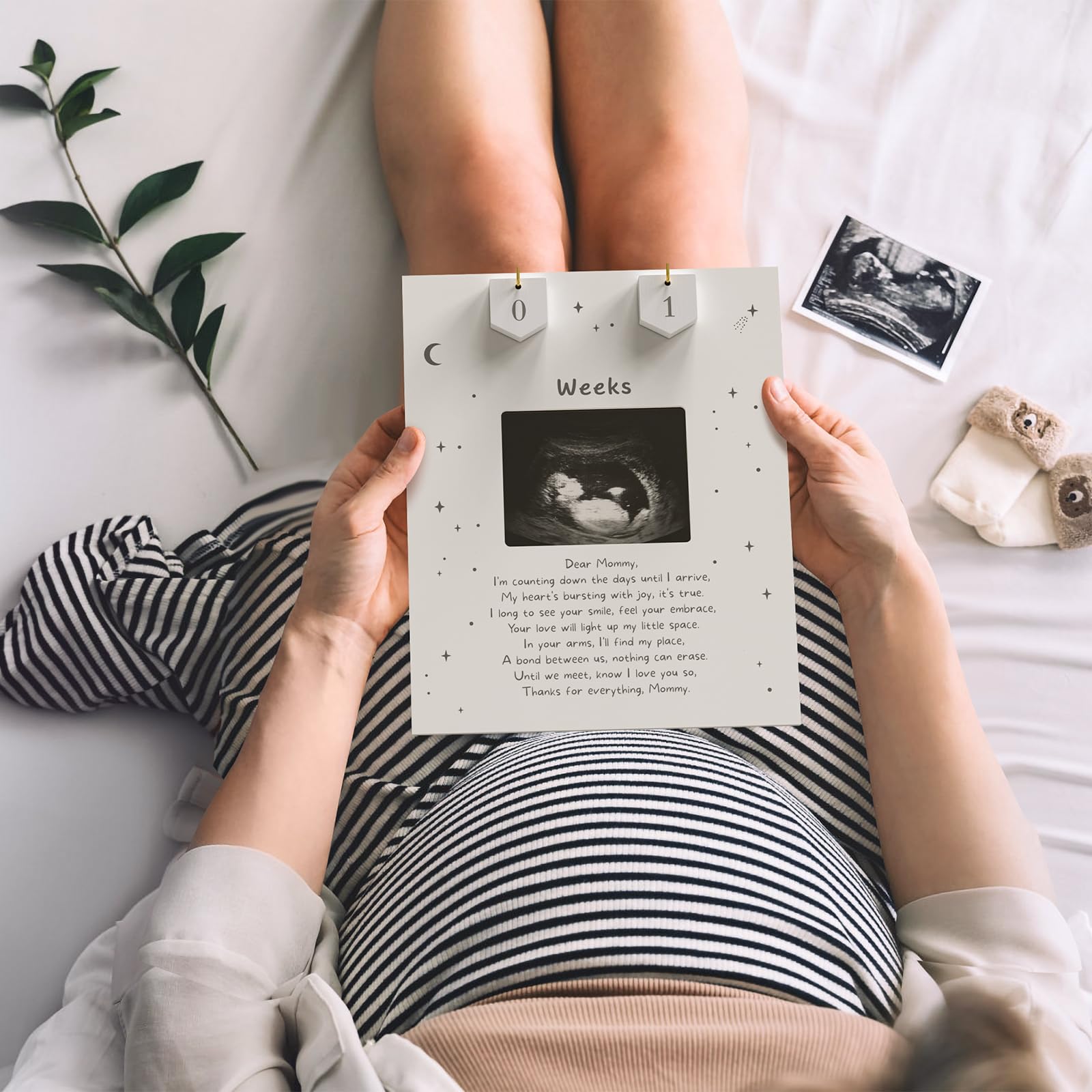 - Q: Is there a special message included in the frame? A: Yes, the frame features a touching message that symbolizes the love and anticipation of welcoming your little one.