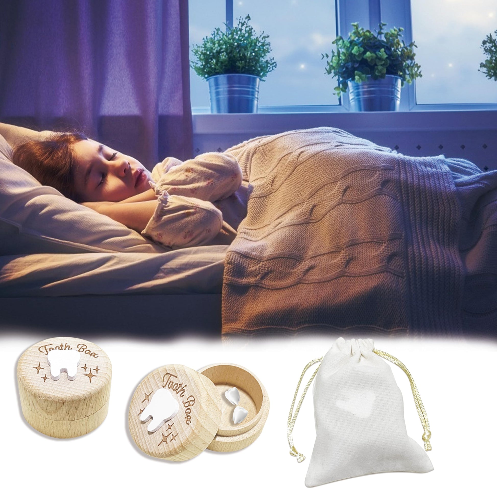 Zalengine Tooth Fairy Box With Storage Pouch, Wooden Tooth Keepsake Box For Kids ' First Lost Teeth, Lost Tooth Case To Put Unde