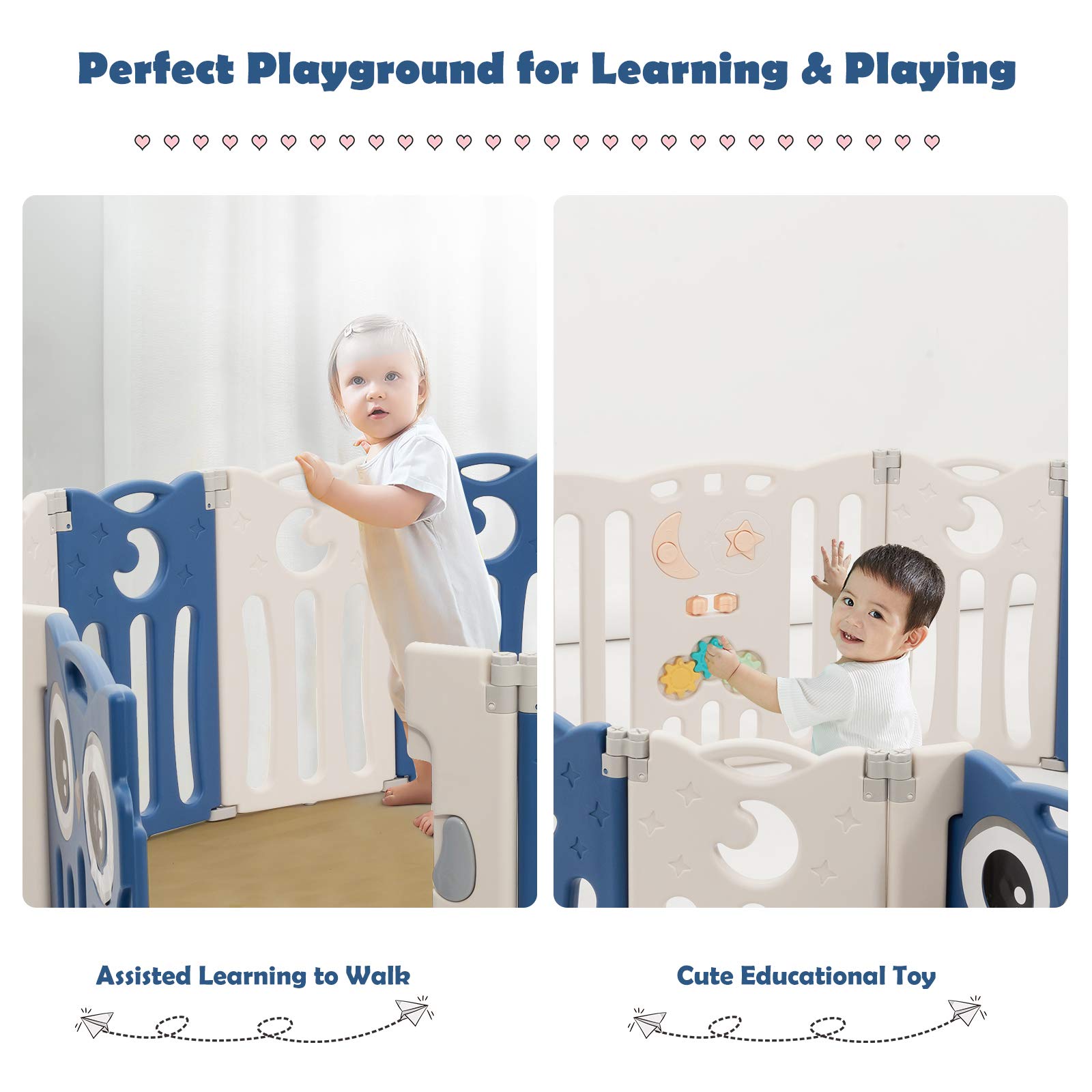 - Q: How does the security lock work? A: The hinged door features a safety lock that prevents your child from leaving the playpen unsupervised, enhancing safety during play.