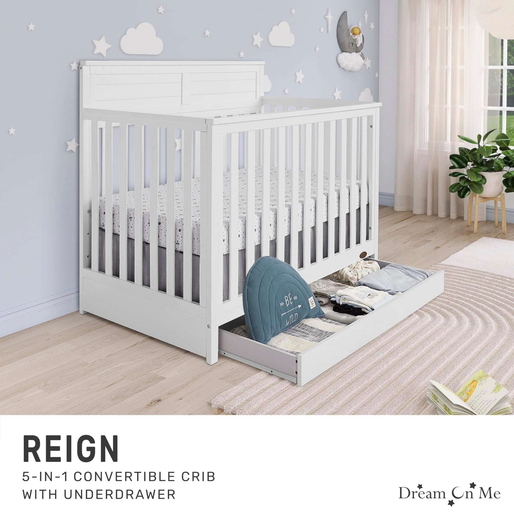 - Q: What are the dimensions of the Dream On Me Reign Convertible Crib? A: The product dimensions are 54.5 inches long, 29.5 inches wide, and 45.5 inches high.