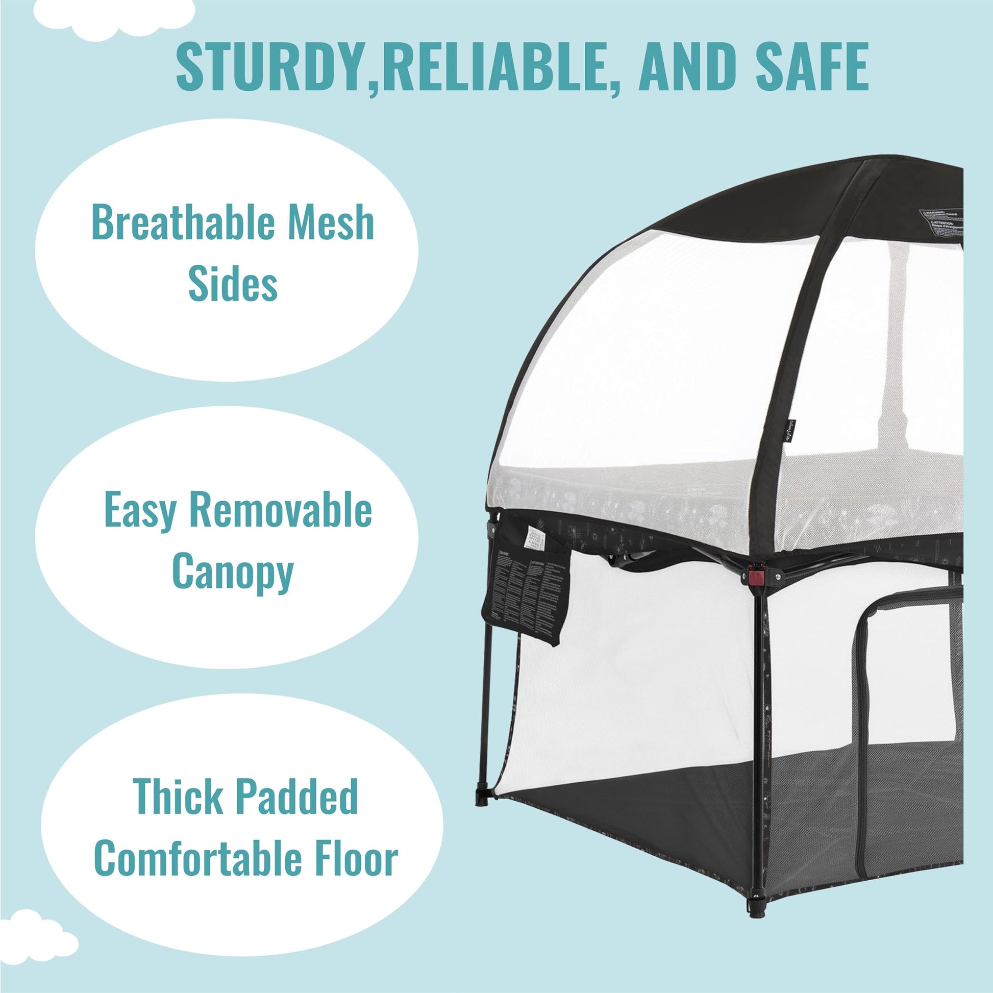 - Q: How does the mesh design benefit the playpen? A: The four clear mesh sides provide ventilation and 360-degree visibility, allowing parents to monitor their child while they play.