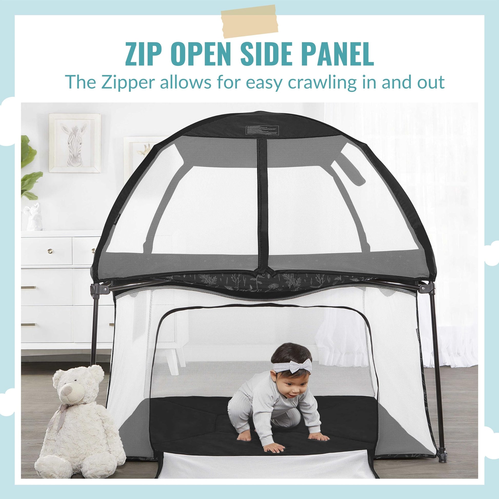 - Q: Is the playpen suitable for outdoor use? A: Yes, the Dream On Me Ziggy Square Playpen is designed for both indoor and outdoor use, featuring a canopy to protect your child from the sun and bugs.