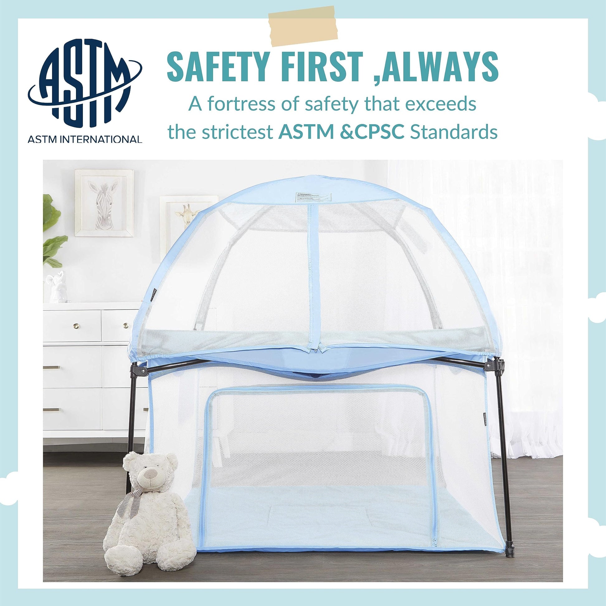 - Q: What features enhance the playpen's ventilation? A: The playpen has four clear mesh sides that provide easy ventilation and 360-degree visibility, allowing you to keep an eye on your child.
