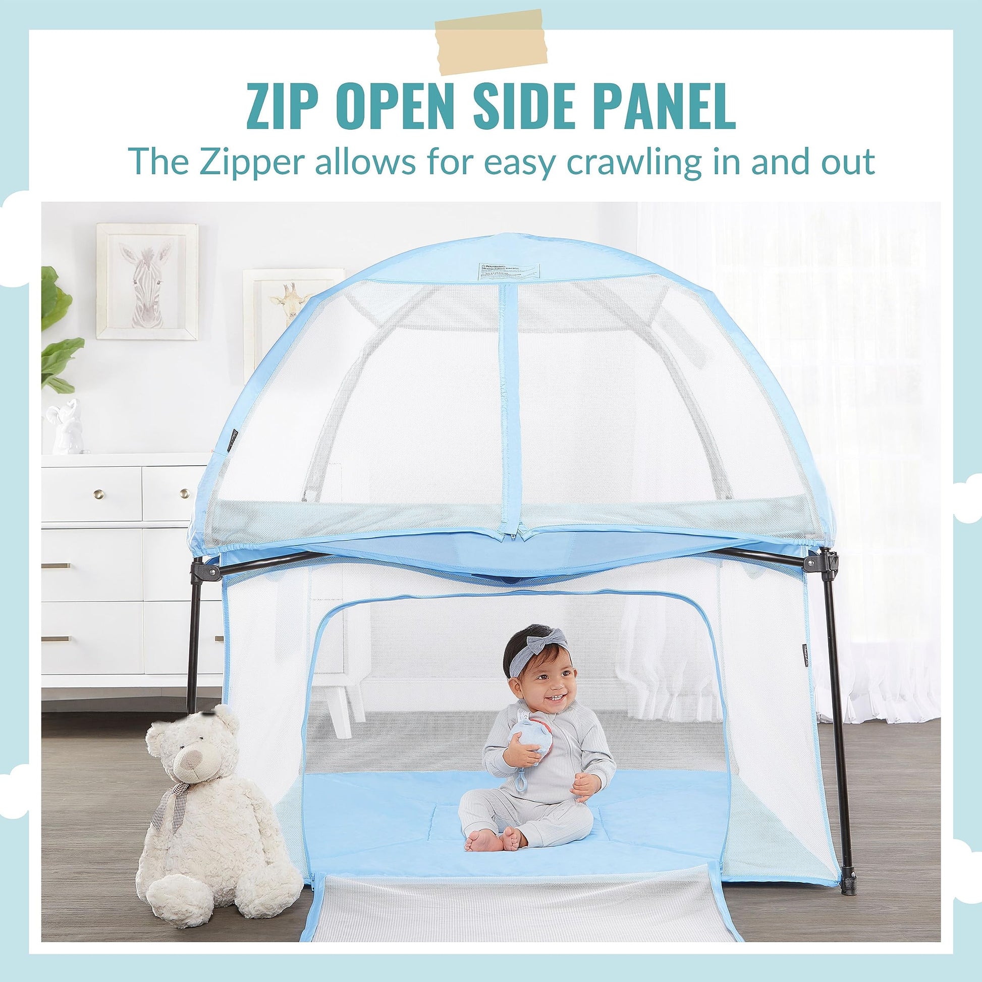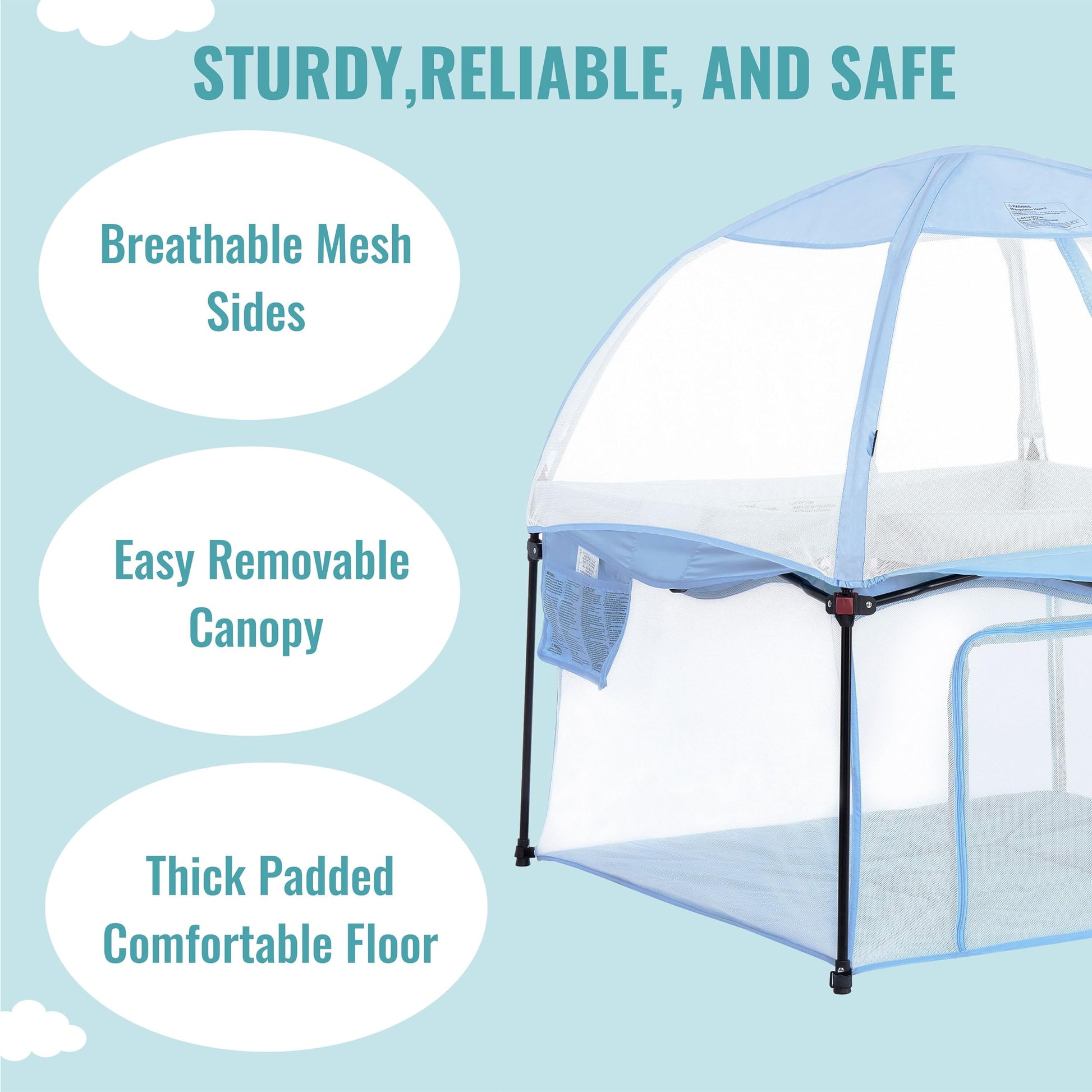 Dream On Me Ziggy Square Playpen With Canopy | Baby Playpen | Portable And Lightweight | Playpen For Babies And Toddler | Blue